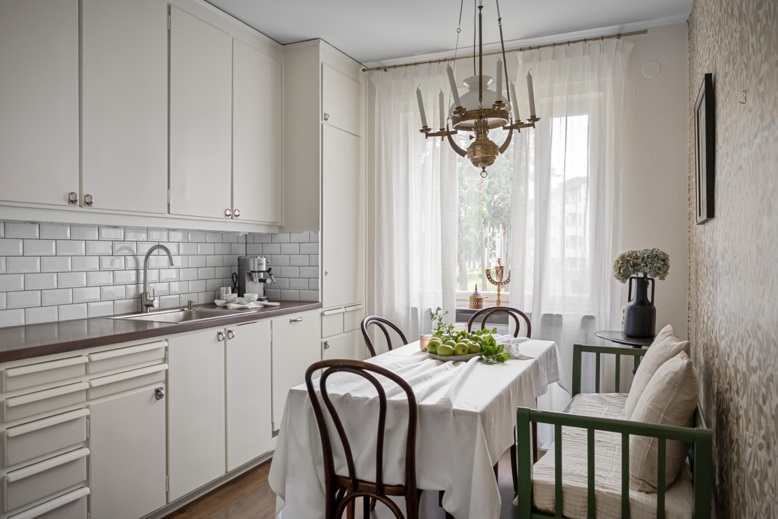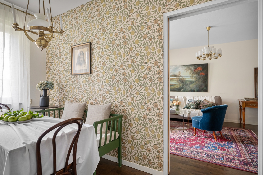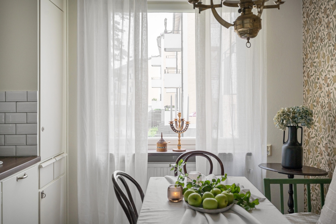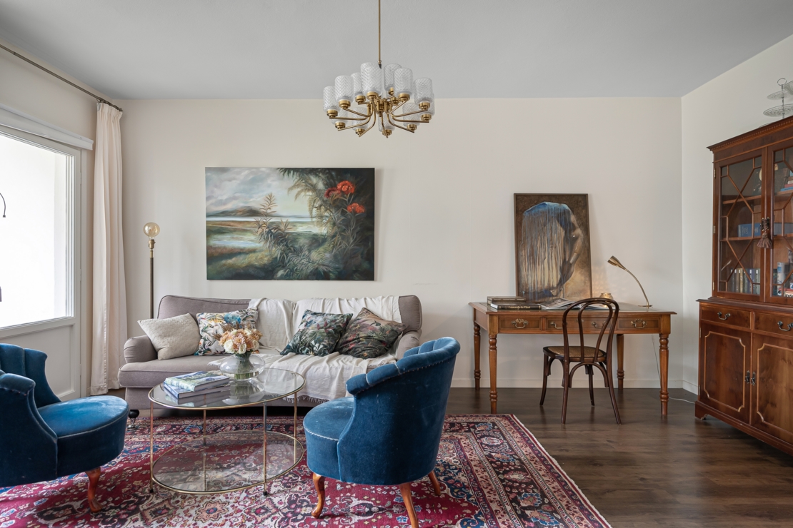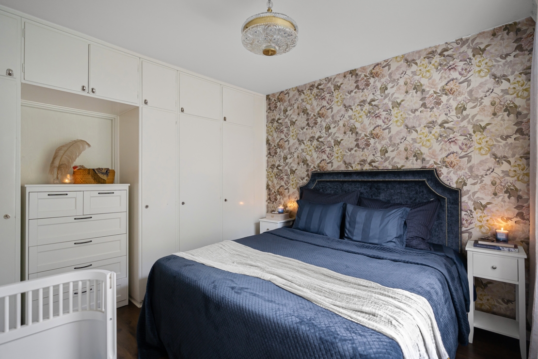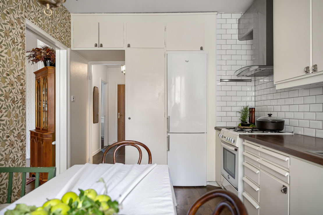 En av Blackebergs finaste bostäder med bevarade 50-tals detaljer med moderna bekvämligheter, bara ett stenkast från Blackebergstorg! Här har du en av områdets större balkonger på ca 10 kvm, som exempelvis rymmer en loungesoffa och passar perfekt för trevliga luncher eller middagar. Lägenheten bjuder på ett stort socialt vardagsrum stort fönster och utgång till den härliga balkongen. Charmigt 50-tals kök som varsamt renoverats med ny köksfläkt, bänkskiva och kakel för att få en mer modern tappning. Köket har utökats med spotlights och integrerad diskmaskin som anpassats i 50-talsutförande, samt en matplats om 4-6 personer. Köket har gasspis och ugn, samt skjutdörr i original mot vardagsrummet. Ljust rymligt sovrum med plats för dubbelsäng och gott om plats till förvaring bakom fyra platsbyggda garderober. Fräscht stambytt och helkaklat badrum med vädringsfönster, vägghängd WC samt dusch och plats för tvättpelare om så önskas. Lägenheten disponerar gott om förvaring i bevarade garderober i original, samt större förråd i källaren om ca 8-9 kvm samt matkällare.