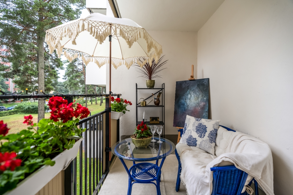 STOR BALKONG I SYDVÄST - TRENDIGA RETRODETALJER - STENKAST TILL TUBEN.