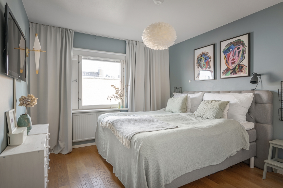Lägenheten har smakfullt renoverats med känsla för stil, modern design, genomtänkta materialval och sobra kulörer. Den är ytterst väldisponerad, yteffektiv och funktionell för paret eller barnfamiljen. Här finns ett stilrent kök som inspirerar till matlagning med all maskinell utrustning och ett generöst vardagsrum med plats för både soffgrupp och matsalsbord samt ljuvligt ljusinsläpp från stort fönsterparti med en inbjudande utsikt mot kringliggande sekelskiftes fastigheter. Rofyllda sovrum i fil med stora fönster mot lugn innergård och utmärkt förvaring i inbyggda garderober. Helkaklat badrum nyrenoverat 2022, i stilsäkert utförande med kombinerad tvättmaskin och torktumlare. Genomgående fina golv samt optimala förvarings- och funktionslösningar. Kort och gott, inget har här lämnats åt slumpen för att skapa ett kompromisslöst drömboende utöver det vanliga.
