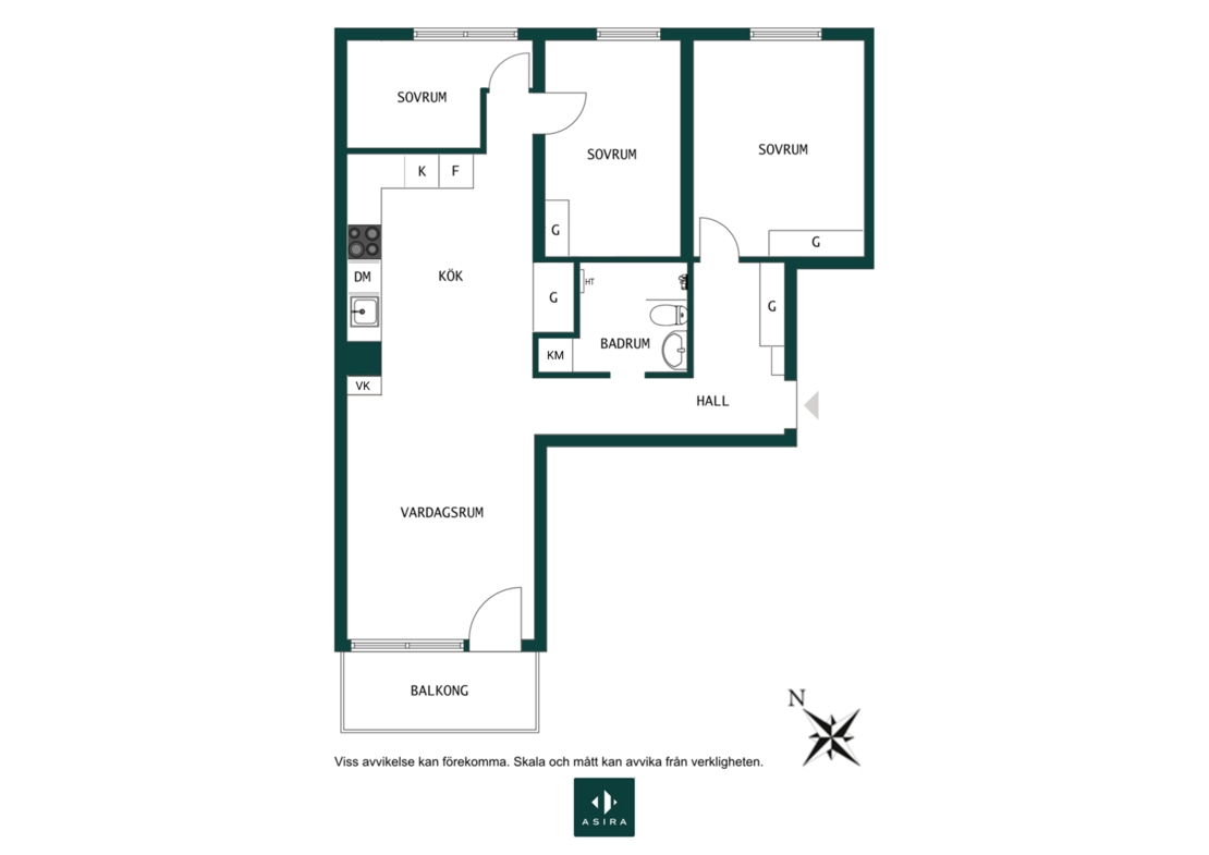 Från den välkomnande hallen kommer du in i det förträffliga vardagsrummet med stora fönster och plats för allehanda möblemang. I anslutning finns den stora balkongen som vetter åt sydväst med härlig kvällssol.