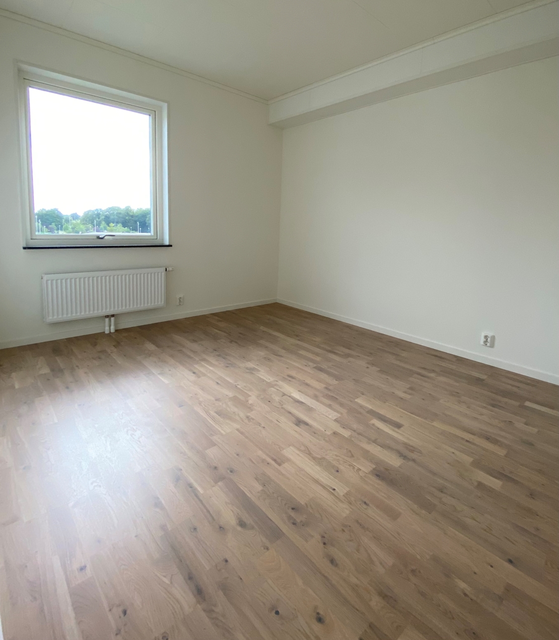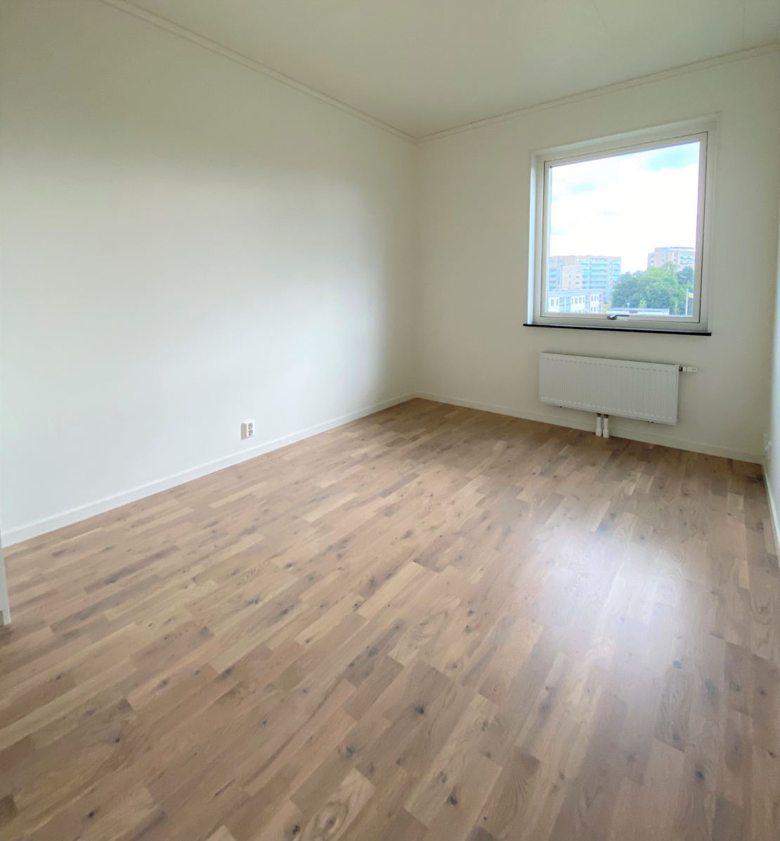 Dem vita stilrena väggarna och parkett, ljus ek med kvistar, i hela lägenheten gör möblering och inredning enkelt vilket öppnar upp möjligheten för dig att sätta din personliga stil i fokus.