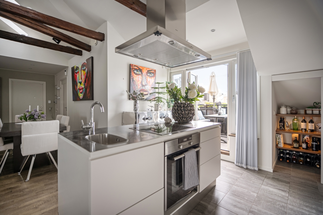 Varmt välkomna till denna stilfulla vindsvåning om 74 + 22 kvadratmeter fördelat på 2,5 rum med stor terrass i bästa solläge. Bostaden är mycket genomtänkt och har renoverats för att genomgående leverera högklassig komfort och kvalitet i såväl planering och materialval för maximal funktionalitet. Fastigheten är i mycket gott skick med stora renoveringar bakom sig. Här bor ni i centralt attraktivt område med utmärkta kommunikationer i direkt närhet.