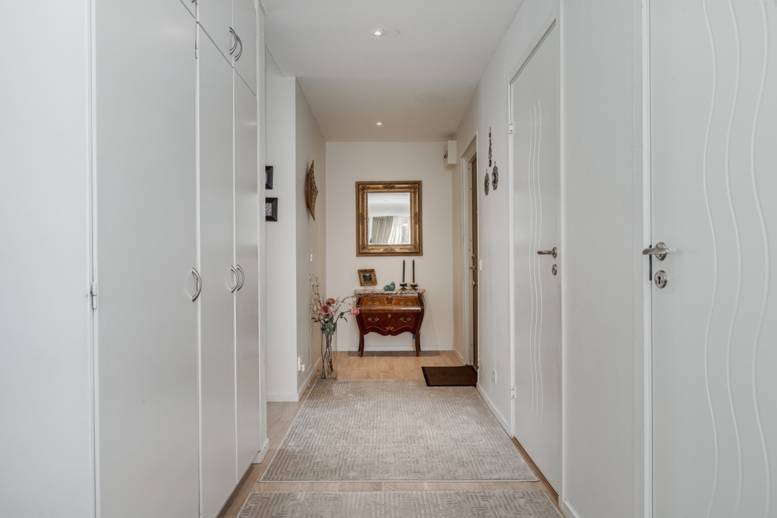 En känsla av en större och lyxigare garderob precis intill entrén med gott om plats.