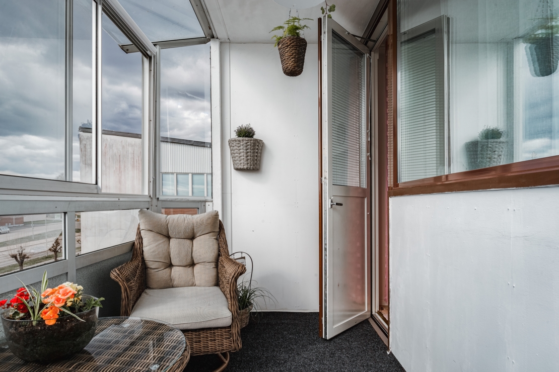Här har man ett stort allrum med gott om plats för det stora sällskapet. Stora fönsterpartier med härligt ljusinsläpp. Vitmålade väggar. Vitlaserad parkettgolv. Spotlights.