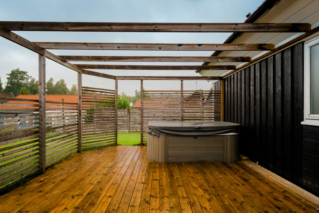 Det finns en nedgjuten värmekabel i betongplattans ytterkant. Denna används under vinterhalvåret