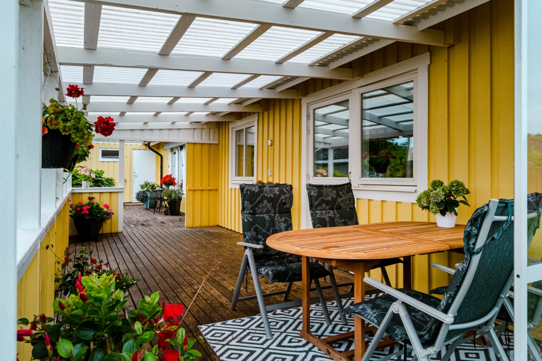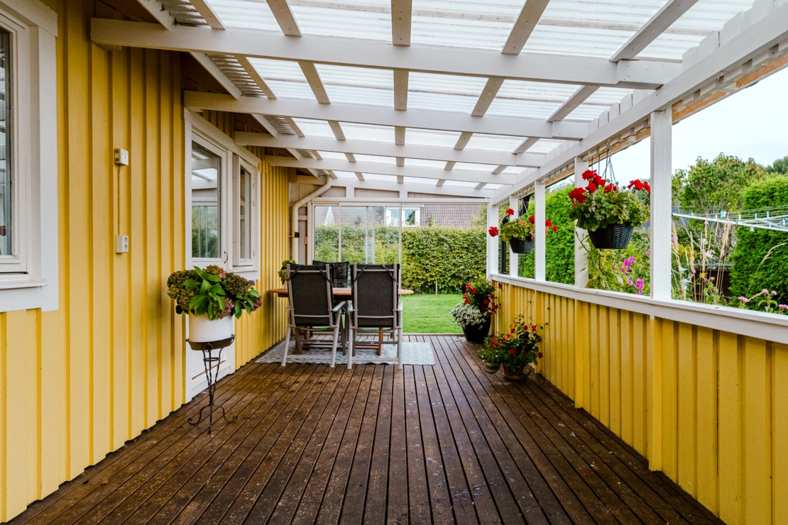 2020 Verandan har renoverats med nya stolpar/räcken.