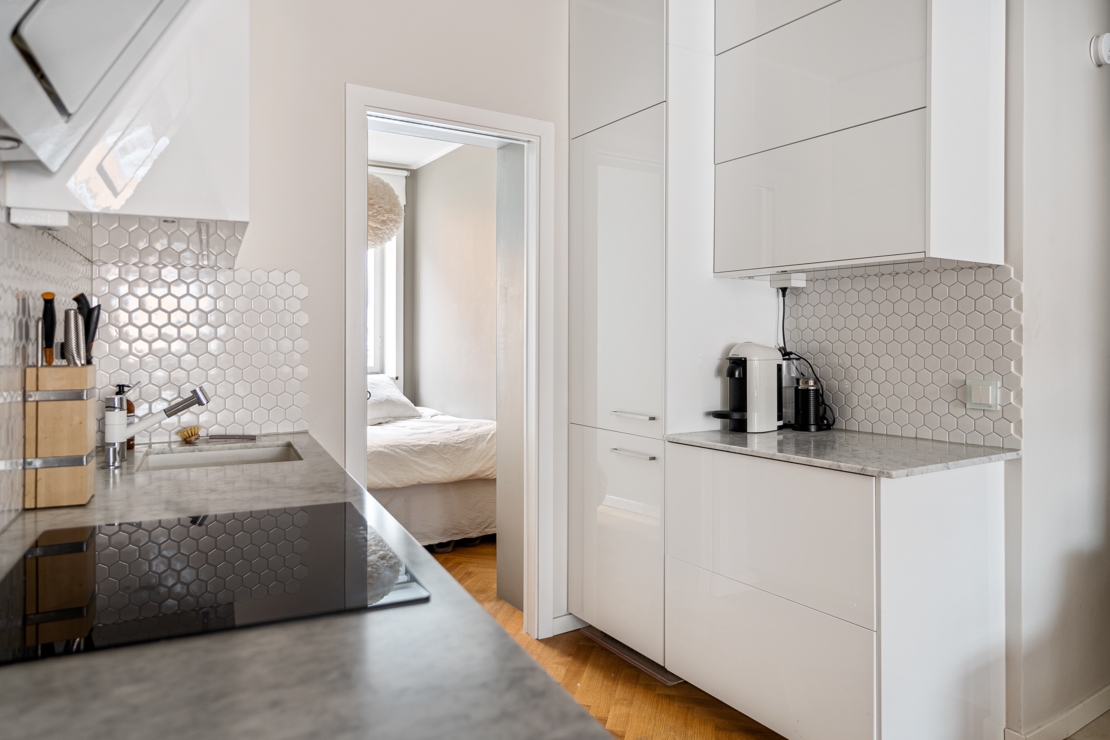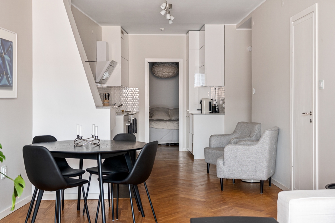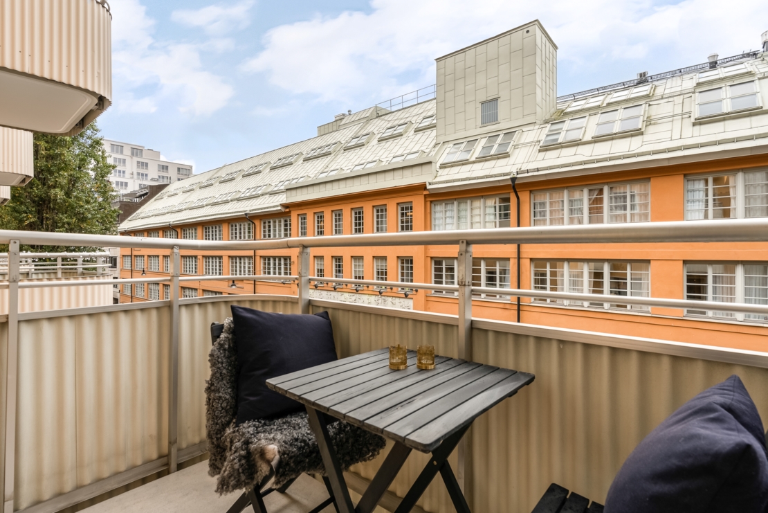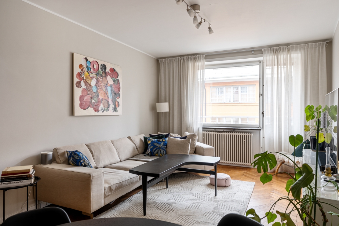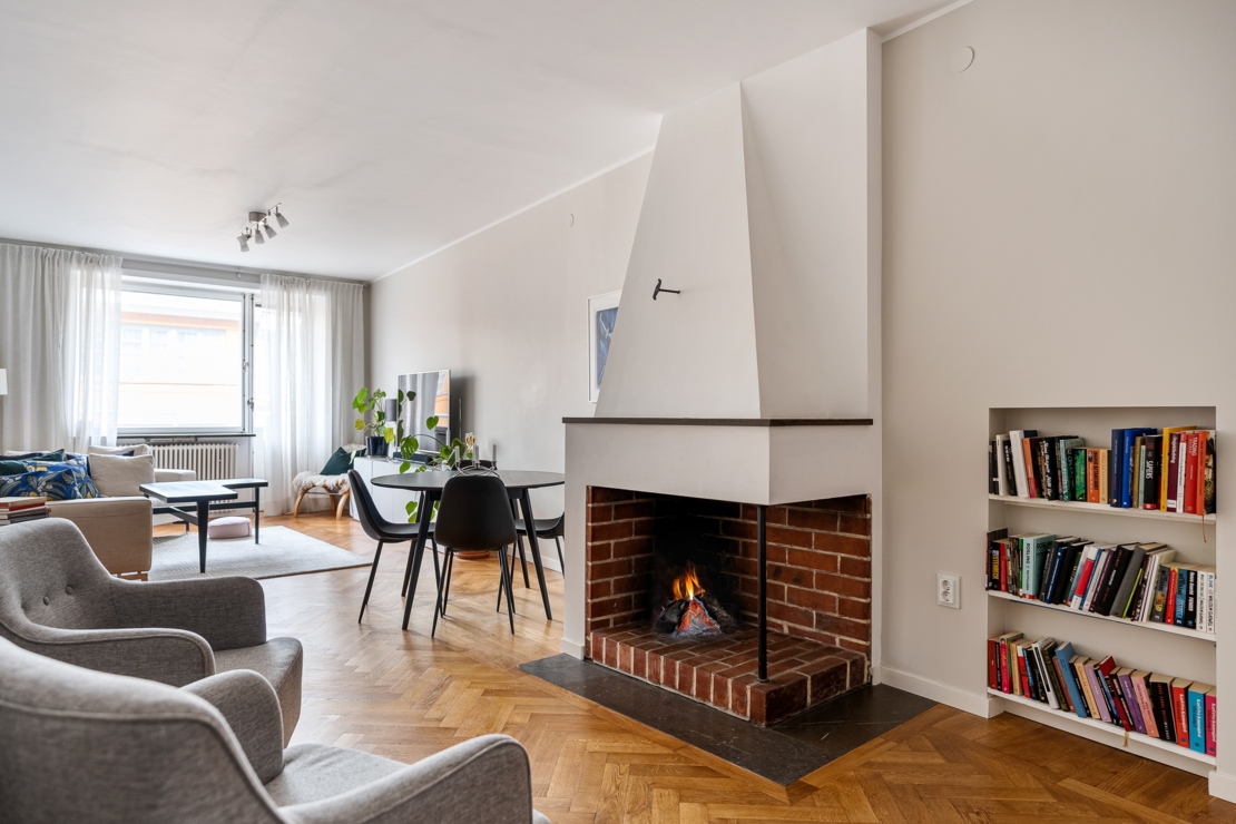 Läget är ungefär så centralt man kan bo i Stockholm med ett oändligt utbud av restauranger och nöjen strax utanför. Samtidigt finns även närhet till lugn och grönska; ta med en filt och en bok till gräsmattan i Humlegården eller Tegnérlunden. Shopping i småbutiker eller längs Stockholms paradgator. Utmärkta kommunikationer nås med en kortare promenad. Välkommen hem!