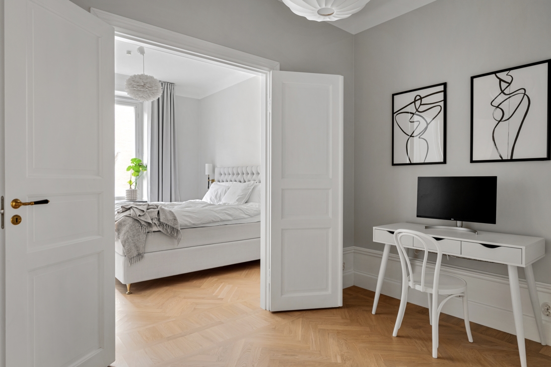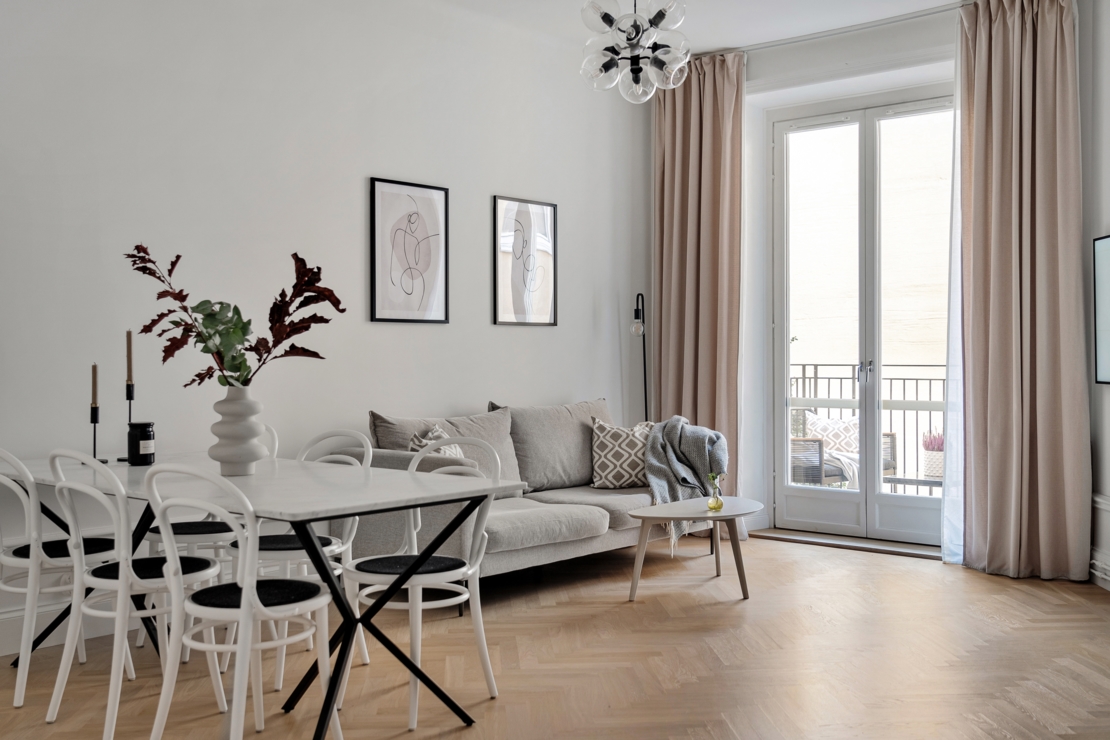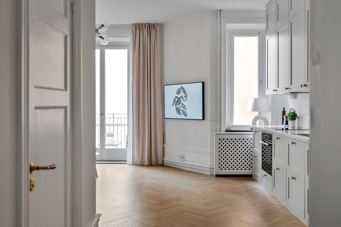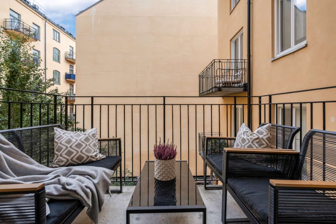 Tilltalande sekelskifte i topp skick med gårdsvänd balkong