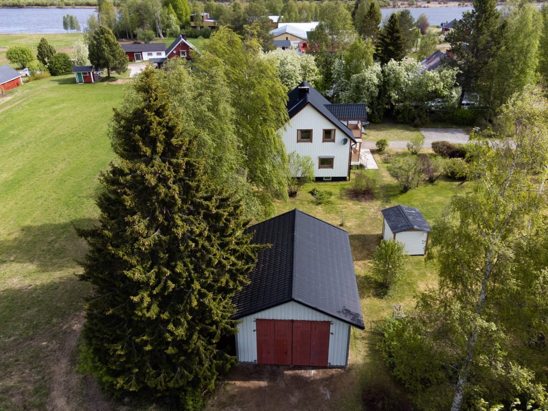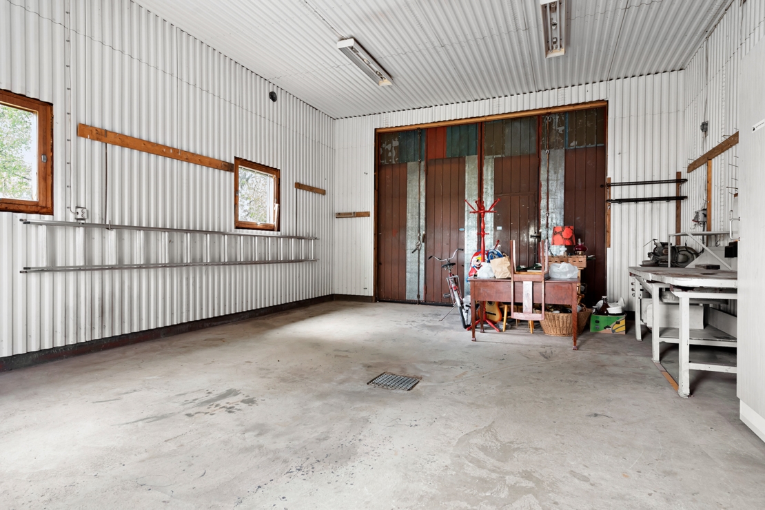 På tomten ligger även ett ca 65-70 kvm stort garage, perfekt för större fordon, maskiner alt. vinterförvaring husvagn. En isolerad snickarbod, hundgård med isolerad koja, förråd, vedbod och en flaggstång.