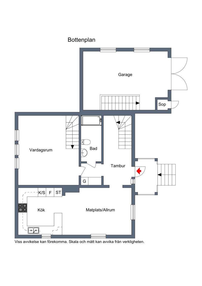 Genom källaren kan man också gå upp till det vidbyggda och isolerade garaget.