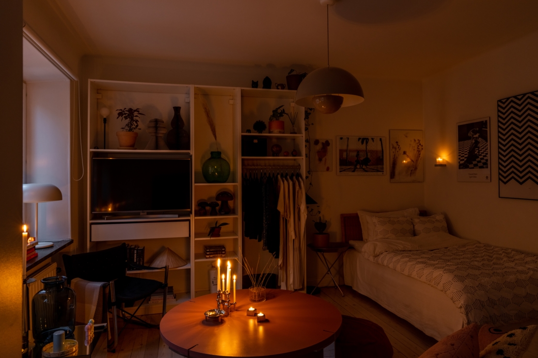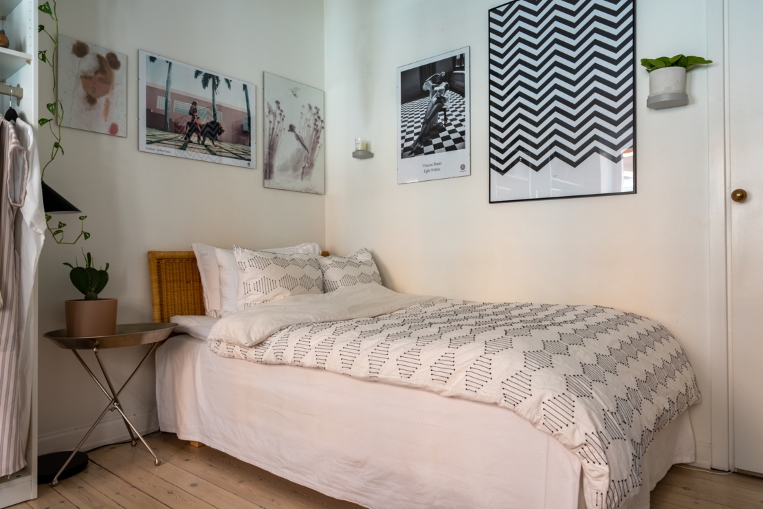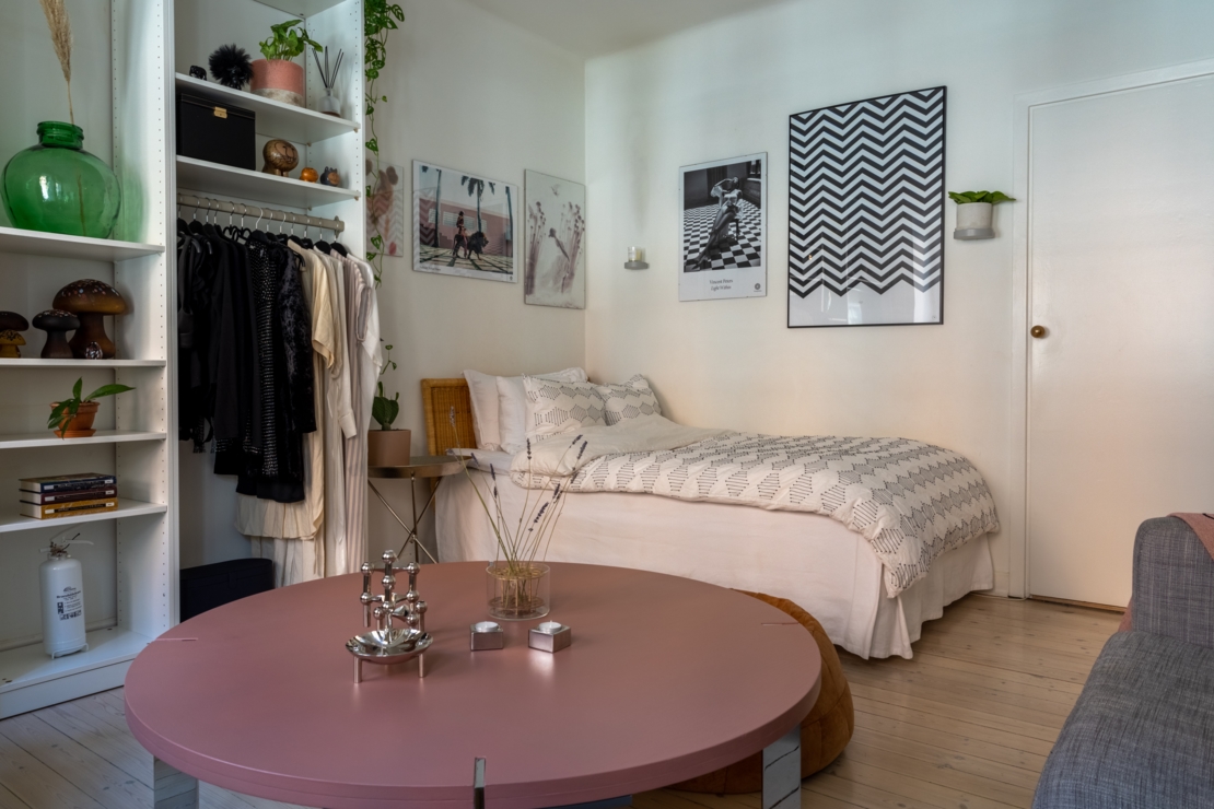 Väl tilltaget allrum med plats för soffgrupp med tillhörande möblemang samt bra yta för säng och sovdel. I allrummet finns även en praktisk klädkammare men gott om förvaring.