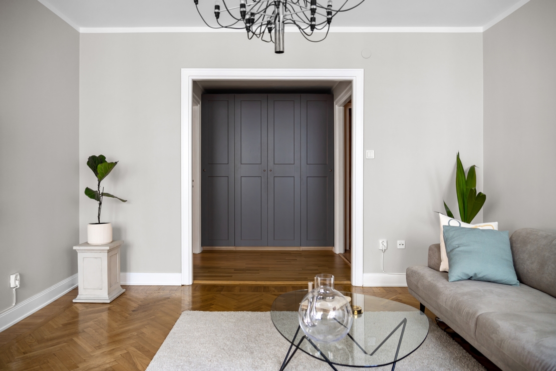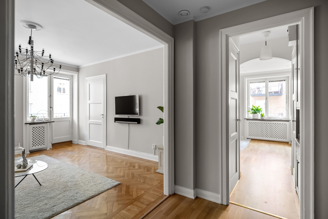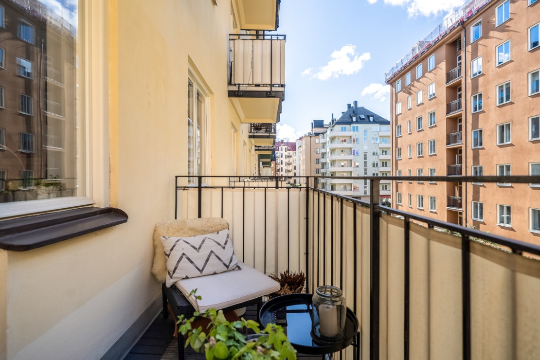 Underbar tvåa med balkong i sydvästläge. Solid Brf och väl omhändertagen fastighet på utmärkt läge med närhet och gångavstånd till allt. Hiss upp till våning 2 där vi möts av en ljus tvåa om 59,1 kvm. En bostad med ljuvlig atmosfär, välplanerade ytor med fina trägolv och vacker fiskbensparkett, generös takhöjd och väggar i ljusa nyanser tillsammans med ett topprenoverat fullutrustat kök. Optimal planlösning med rymliga rum, stora fönsterpartier i två väderstreck som ger ett strålande ljusflöde. Högt upp i huset med fantastisk utsikt mot vackra byggnader och som visar del av himmeln. Här trivs man bra i lugna kvarter, nära parker och alldeles intill stadens stora utbud av kultur, nöjen och shopping. Ett oslagbart läge i hjärtat av Stockholm.