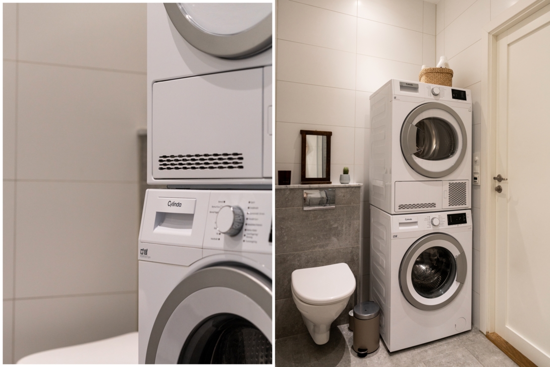 Den gemensamma tvättstugan är belägen i gårdshusets källare och har två tvättmaskiner, torktumlare, torkskåp samt en mangel.