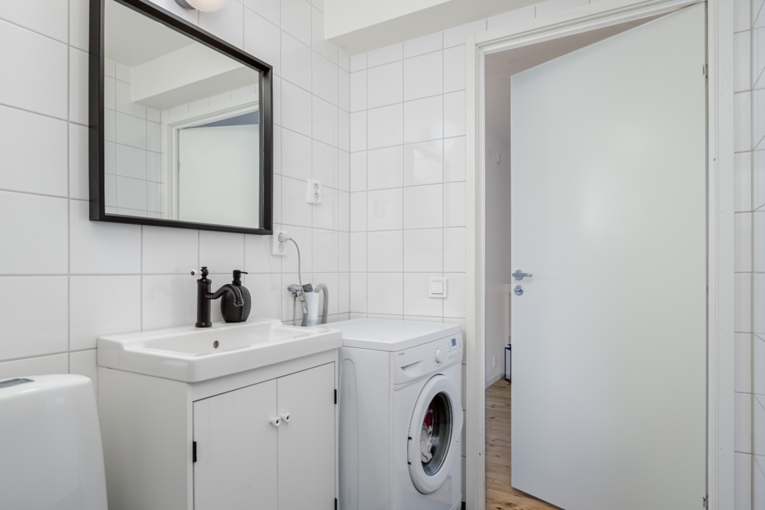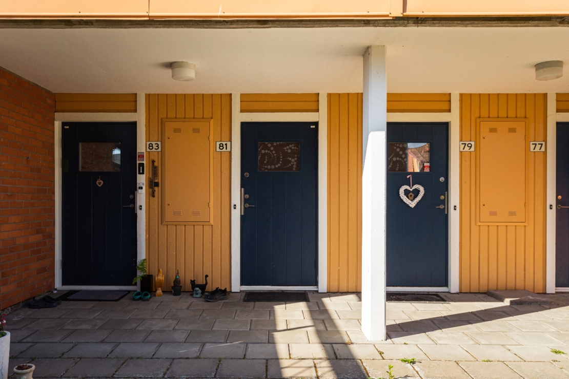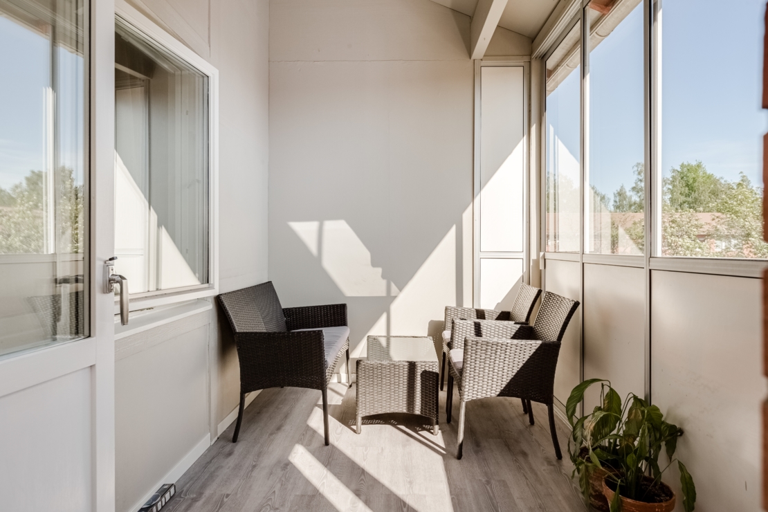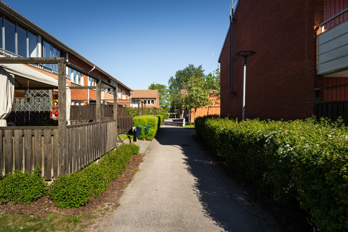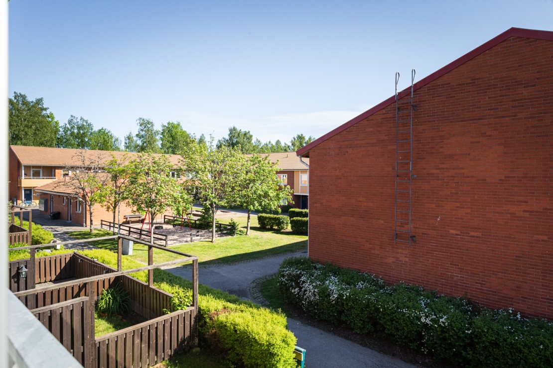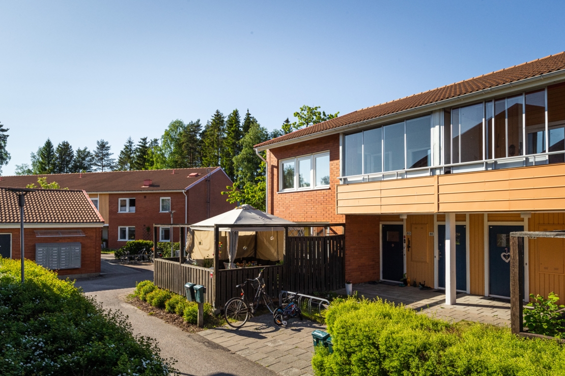Via en egen entré i markplan kommer man upp till lägenheten. Lägenheten är ljus och luftig. Planlösningen erbjuder rymligt kök, vardagsrum, två sovrum samt badrum. Trevlig inglasad balkong. Ett eget garage ingår i avgiften. Stabil förening.