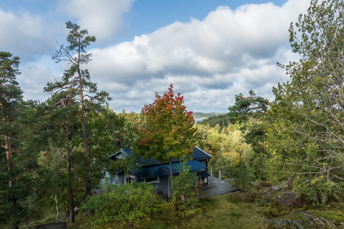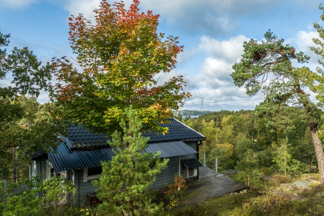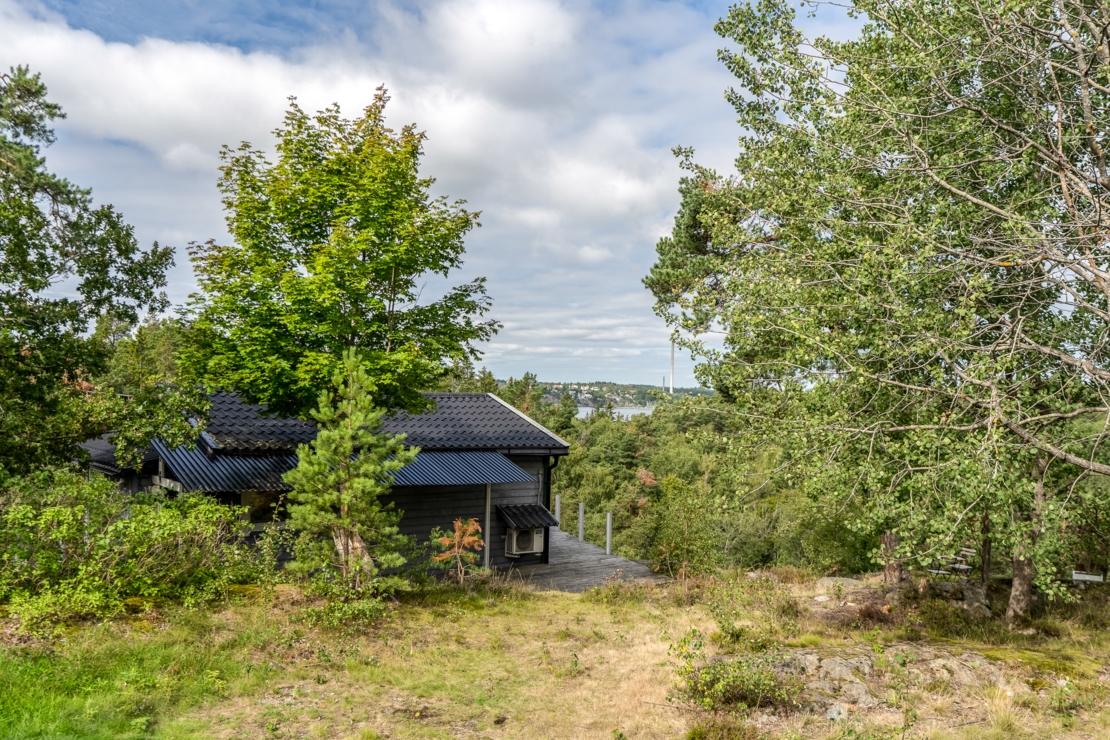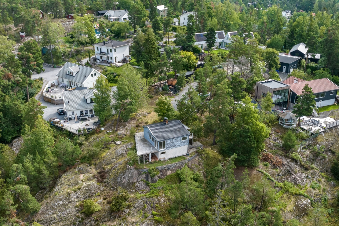 Denna fastighet är belägen på toppen av Björnberget med en unik vy över landskapet. I förgrunden syns trädtopparna från Gärdesuddens naturreservat som ramar in vattnet med Lidingö som kuliss. Här passerar de stora färjorna i sakta mak på väg in och ut ur Stockholm. På endast 4 minuters promenad når du havet längs naturreservatet med en liten hamn för fritidsbåtar. Vacker natur och flertalet sjöar omger området och kan nås inom 10-20 minuters promenad.
