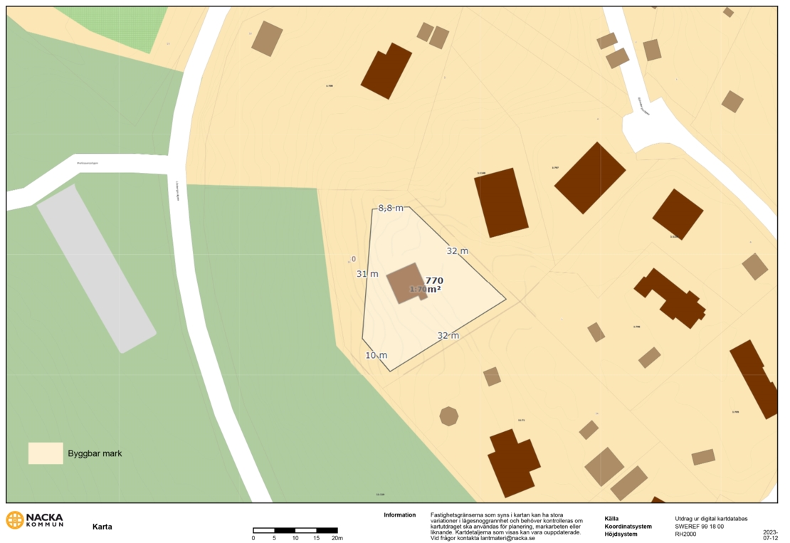 Tomten är placerad på kanten av berget, vilket ger en 180° ostörd naturvy utan grannhus som stör eller insyn som begränsar. Fastigheten ger möjligheten att bygga en stor villa i suterräng, med ett eller två plan och att skapa en bostad som tar vara på den unika utsikten. Här kan du njuta av soliga terrasser och spektakulära solnedgångar året runt!