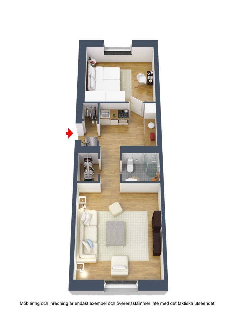 Genomgående och välplanerad tvåa på attraktiv adress!