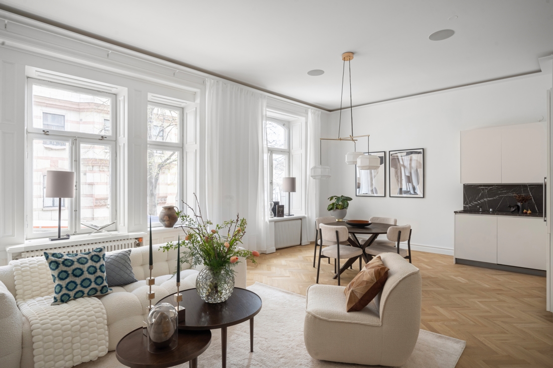 Välkommen till Strandvägen, Stockholms bästa adress! Denna imponerande våning på 123 kvadratmeter erbjuder en elegant livsstil på magnifik adress. Med en välplanerad 3 rums-layout och en öppen planlösning får du generösa och ljusa rum att trivas i. Varje detalj är noggrant utvald för att skapa en harmonisk atmosfär. Njut av de lyxiga bekvämligheterna, som ett fullt utrustat kök och exklusiva materialval. Dessutom har du tillgång till Strandvägens attraktioner och det pulserande stadslivet precis utanför din dörr. Låt ditt drömboende bli verklighet här på Strandvägen. Välkommen hem till en tidlös och sofistikerad livsstil.