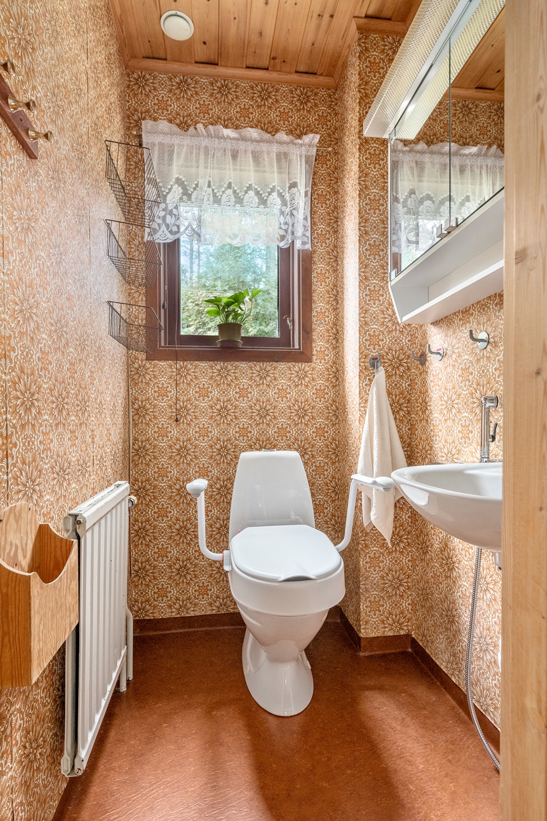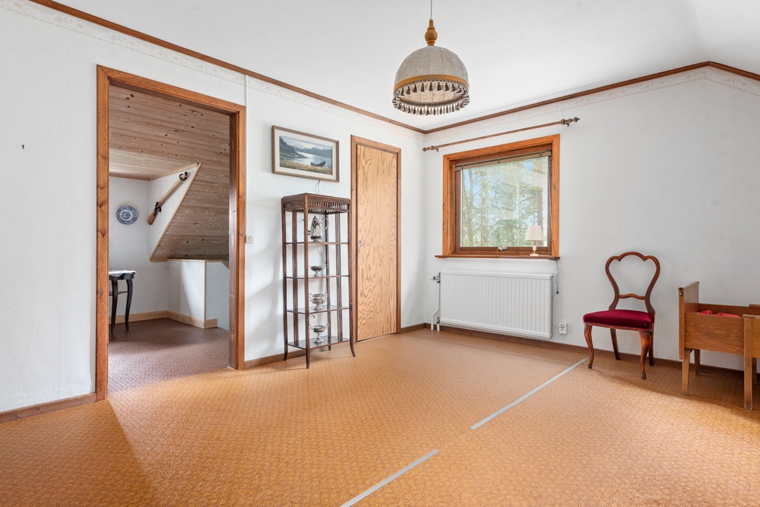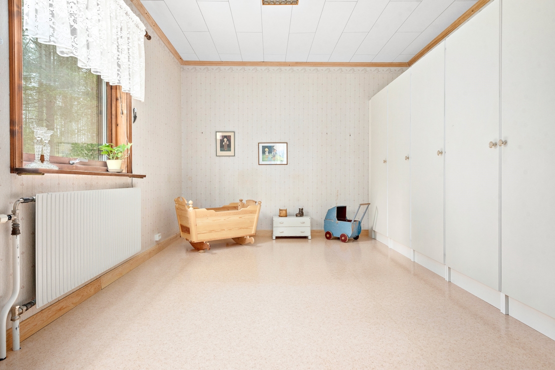 På övreplan finns två sovrum, stor garderob, balkong och ett mindre utrymme med möjlighet att inreda ytterligare en toalett.