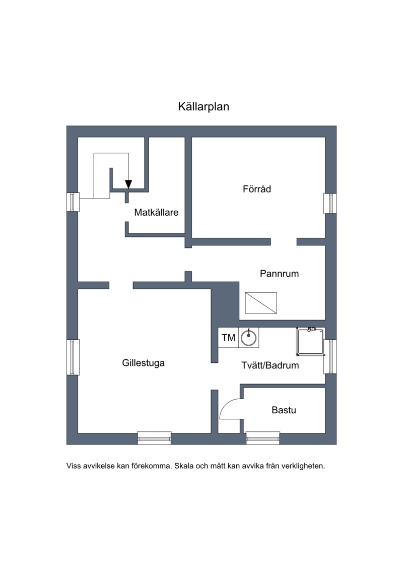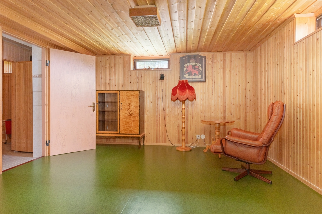 I källaren finns ett kaklat badrum med golvvärme och bastu, en inredd gillestuga, pannrum och matkällare.