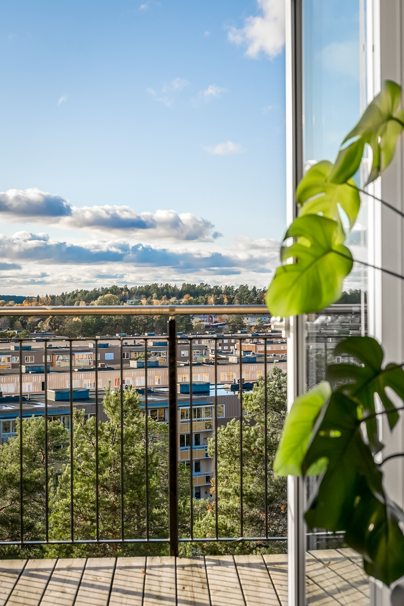 En stor och härlig balkong på ca 8 kvm med fantastisk utsikt över takåsar och ned mot havet! Här lyser kvällssolen långt in på natten under sommaren och har plats för en större möbelgrupp, samt el-eller gasgrill.