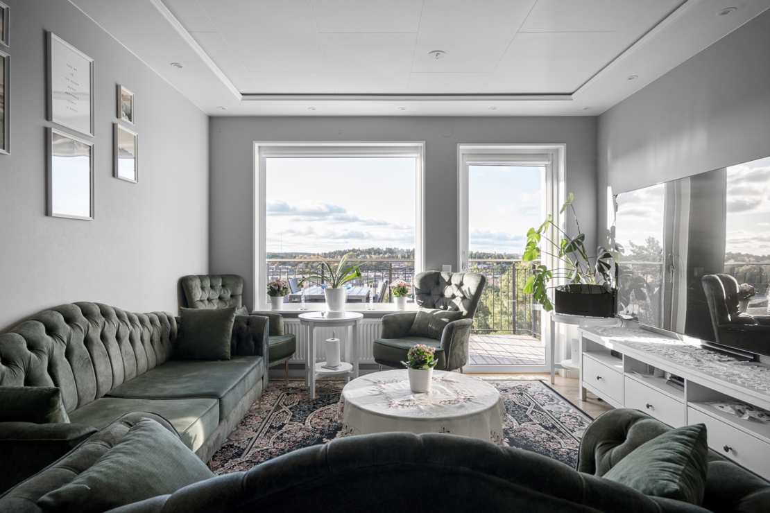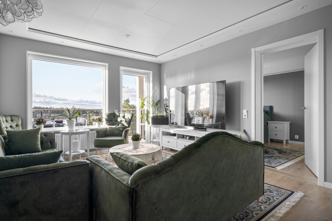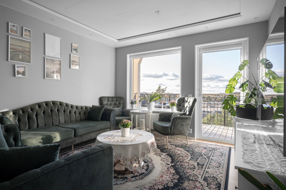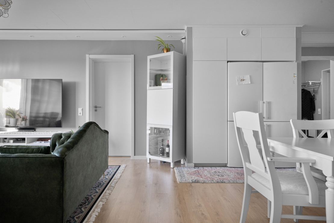 Välkommen in i en rymlig och praktisk hall med gott om förvaringsmöjligheter samt en intilliggande klädkammare. Vidare leds du in till bostadens öppna och sociala ytor, där kök och vardagsrum harmoniskt flyter samman. De stora fönsterpartierna släpper in rikligt med ljus och ger rummet en inbjudande känsla. Från vardagsrummet når du den rymliga balkongen som erbjuder en hänförande utsikt, perfekt för avkoppling eller trevliga grillmiddagar under sommarmånaderna.