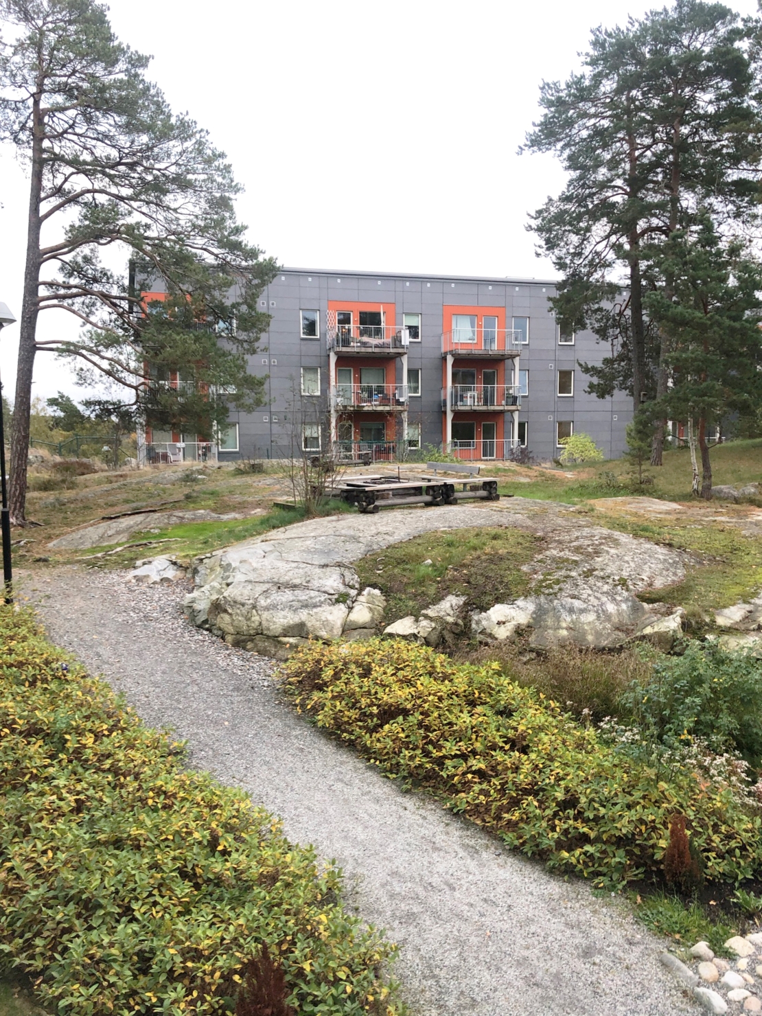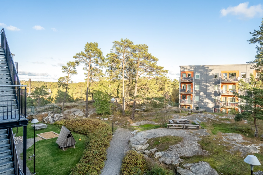 Området präglas av grönska, närhet till vatten och lugn atmosfär. Här bor du i en rogivande miljö med närhet till naturen, men samtidigt bekvämt pendlingsavstånd till stan. Det finns matbutiker och service i närområdet, vilket gör detta till ett perfekt boende för den som vill kombinera naturens lugn med tillgång till stadens puls när det behövs.