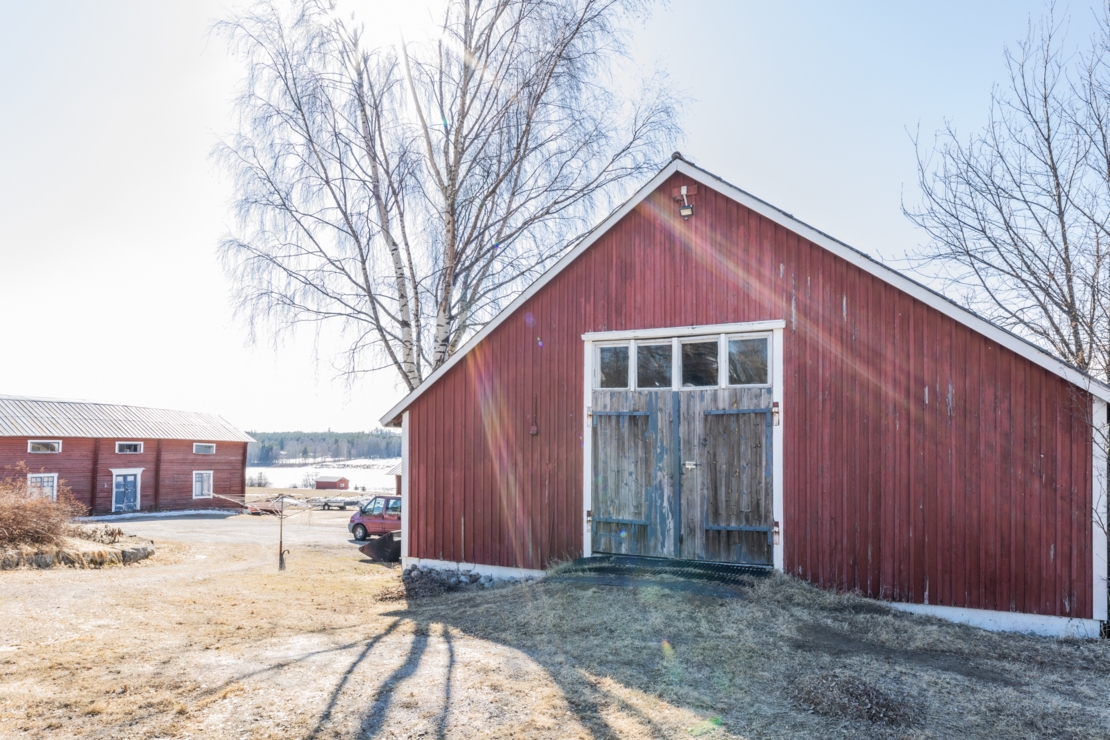 Den cirka 1,5 hektar stora tomten erbjuder mycket mer än bara bostadshuset. En stor ladugård på två plan, perfekt för att förvara bilar, husvagn, snöskoter och andra maskiner. Dessutom i nedre plan i ladugården finns ett isolerat garage med vedkamin och ett traktorgarage med plats för två traktorer.