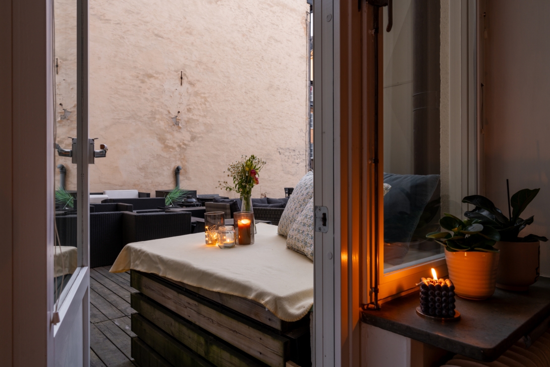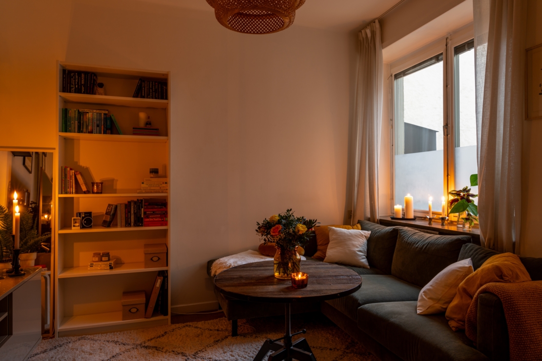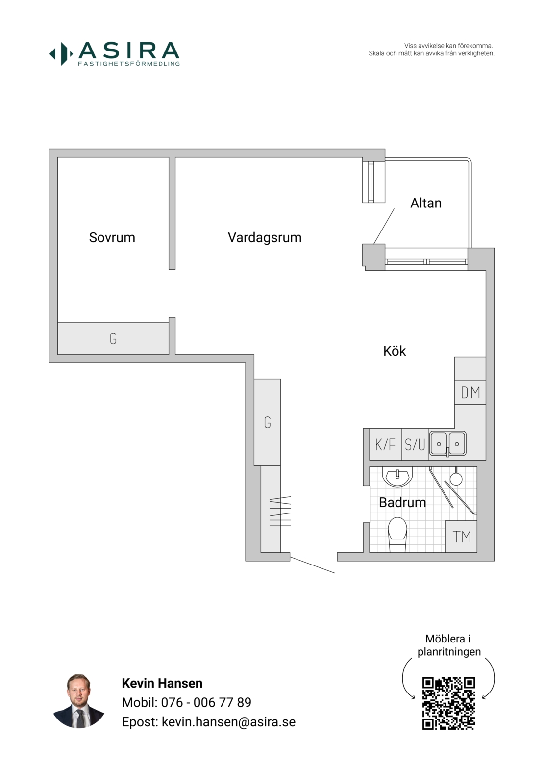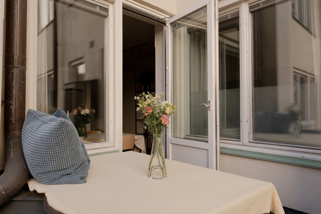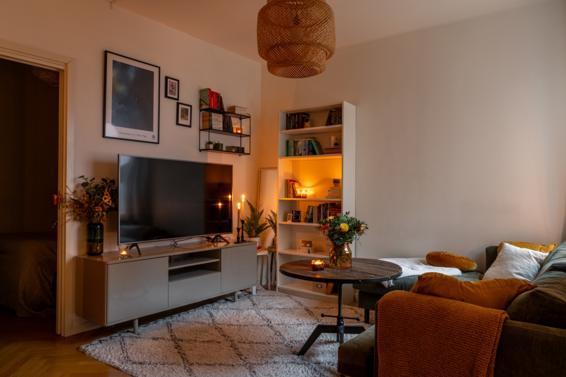Vardagsrum med plats för soffgrupp med tillhörande möblemang.
