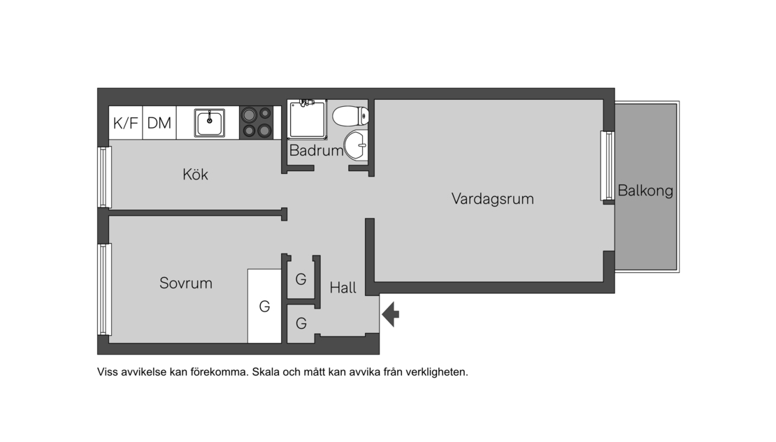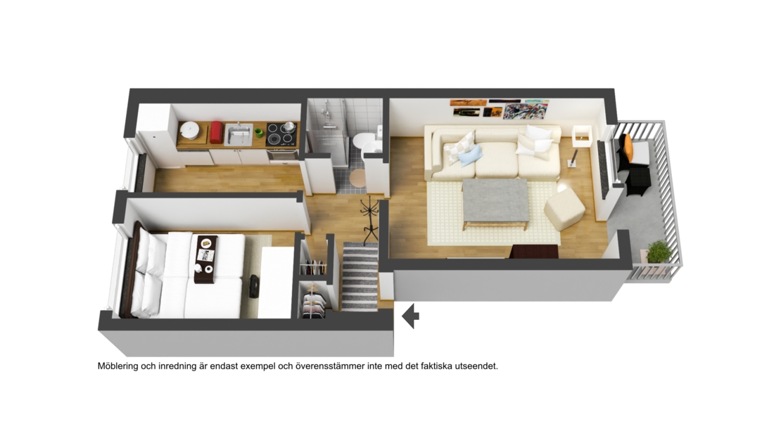 Här är en kvadratsmart tvåa med genomgående ljusinsläpp och charmig känsla. Lägenheten ger er en lagom hall med förvaringsmöjligheter, ett lättmöblerat sovrum perfekt för dubbelsäng med tillhörande möbler. Ett välskött kök med utrymme för ett matbord eller bardisk. Helkaklat badrum utrustat med dusch och ljusa toner. Ett luftigt vardagsrum som enkelt kan stängas igen med en smakfullt skjutdörr i trä som inger en vacker detalj till rummet. Vardagsrummet erbjuder plats för såväll soffgrupp och matbord, härifrån når vi den soliga balkongen perfekt för morgonkaffet eller mysiga sensommarkvällar!