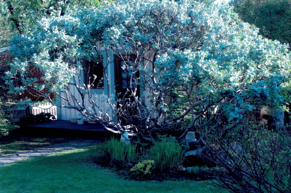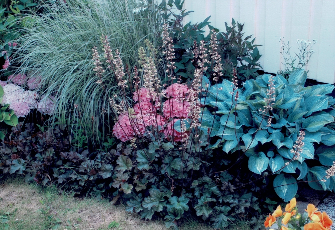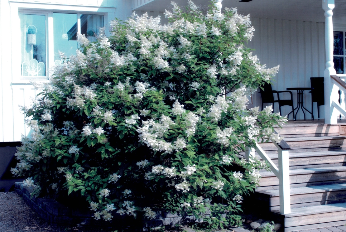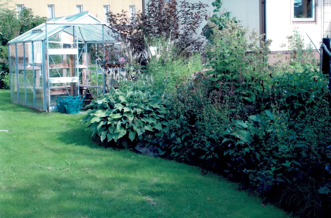 - En mycket fin och välvårdad trädgård med buskar, blommor och olika typer av växter – lagom stor och lättskött
