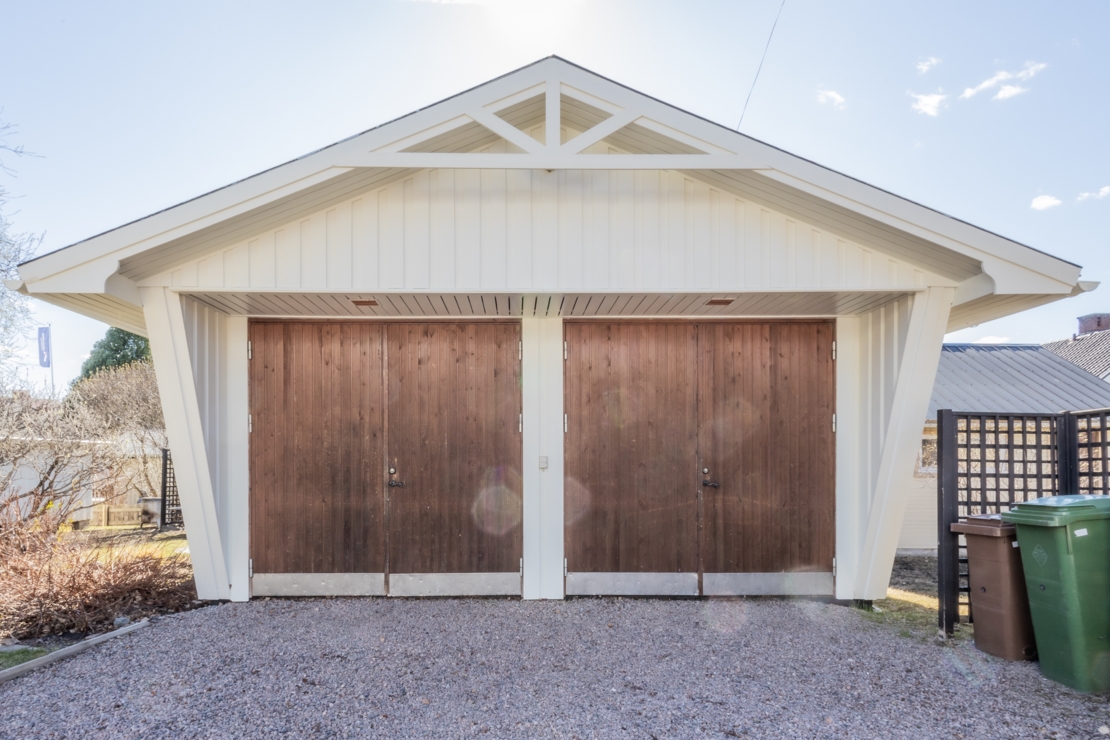 - Ett ca 60 kvm stort, isolerat dubbelgarage på betongplatta, uppvärmt med fjärrvärme