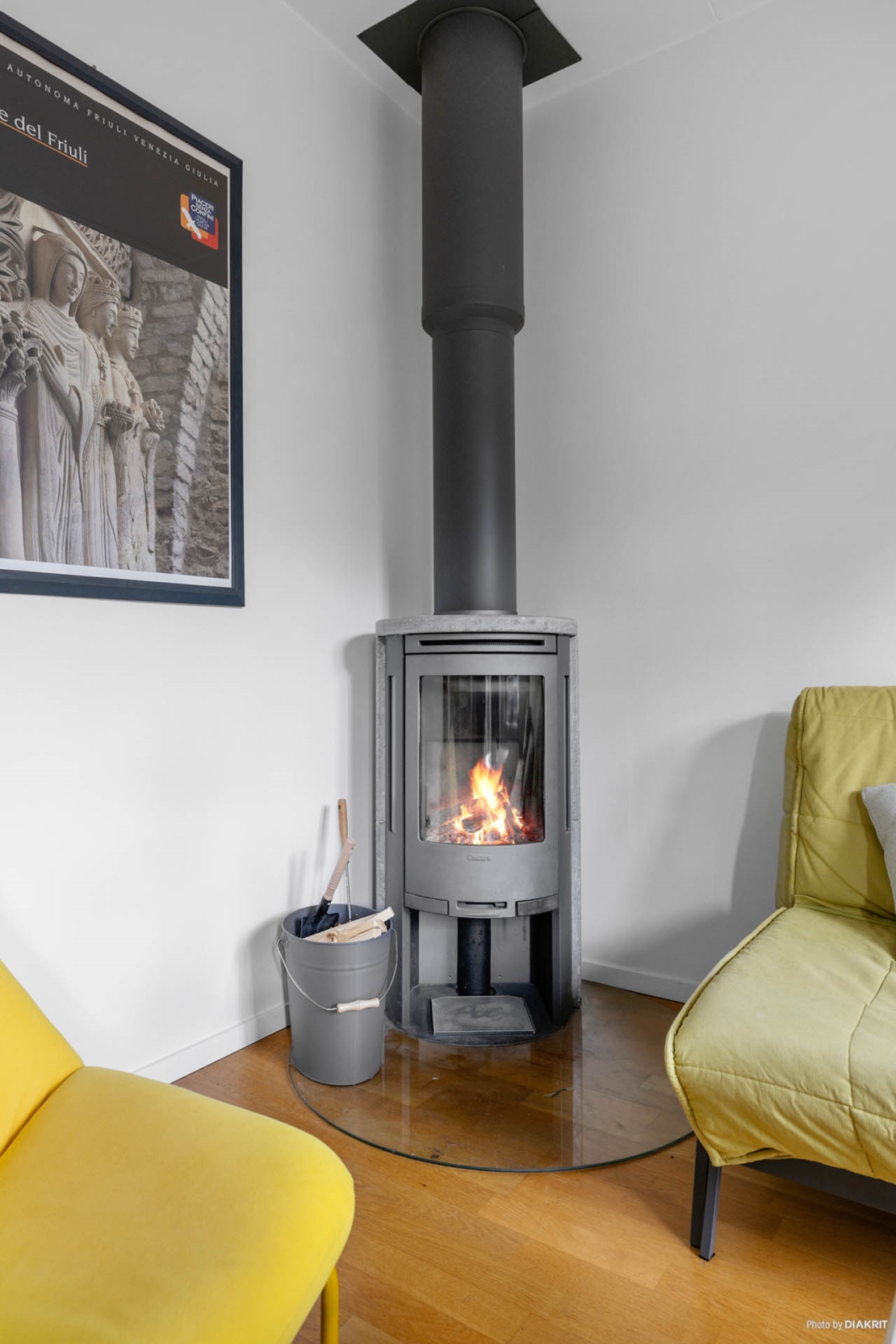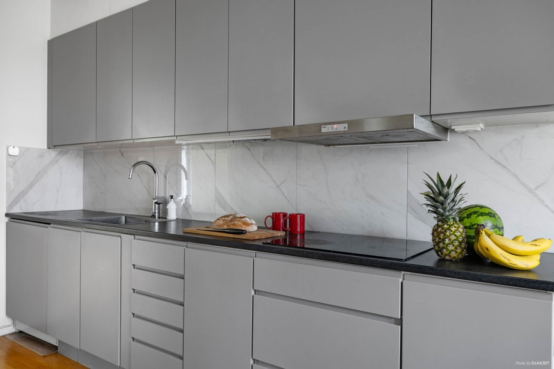 Det moderna och välutrustade köket erbjuder goda arbetsytor och matplats för sex personer, med ljusinsläpp från två väderstreck. I öppen planlösning ansluter köket till det trivsamma vardagsrummet, där en öppen spis skapar stämning och värme. Härifrån nås även ett soligt trädäck om ca 15 kvm – en perfekt plats för sommarens måltider och avkoppling. Motoriserade markiser över både fönster och altandäck ger extra komfort under soliga dagar.