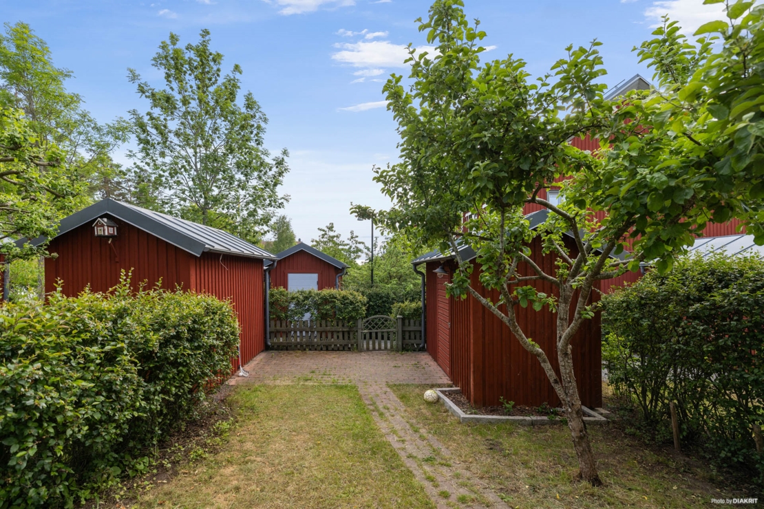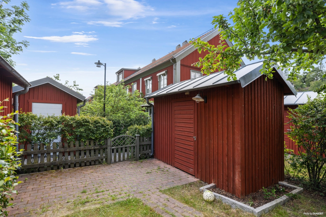 Den lättskötta trädgården omfattar ca 70 kvm och bjuder bland annat på ett stort äppelträd som ger riklig och välsmakande frukt. Här finns även ett välordnat förråd om ca 6 kvm. Från trädgården har du utsikt mot föreningens välutrustade lekplats, vackert inramad av en lugn och trygg innergård. Här skapas gemenskap och lek i en skyddad och barnvänlig miljö.