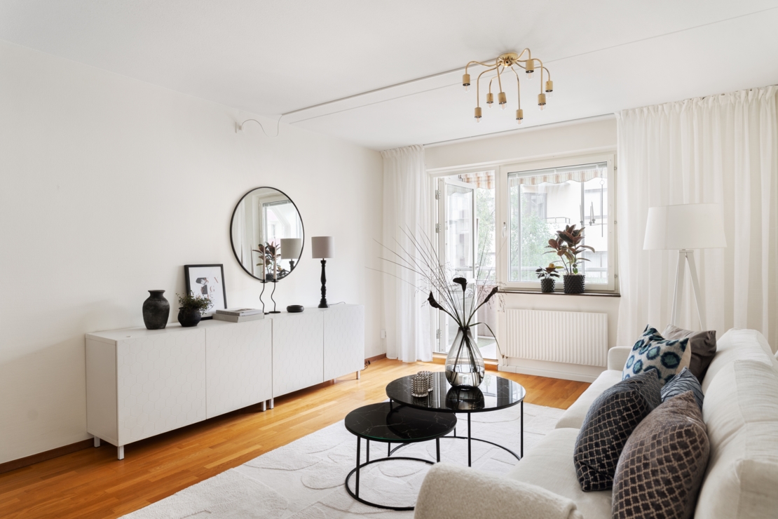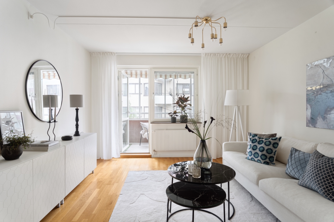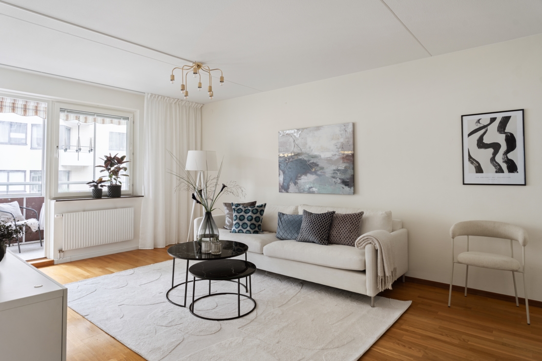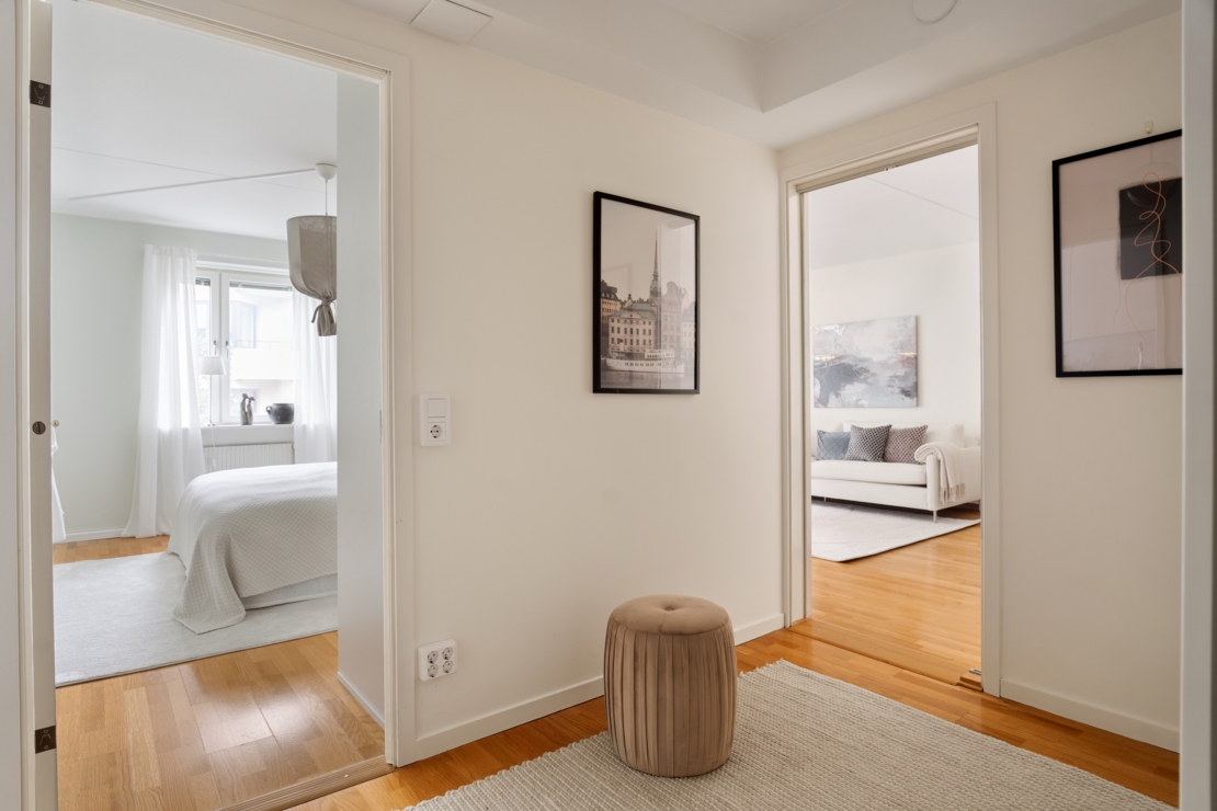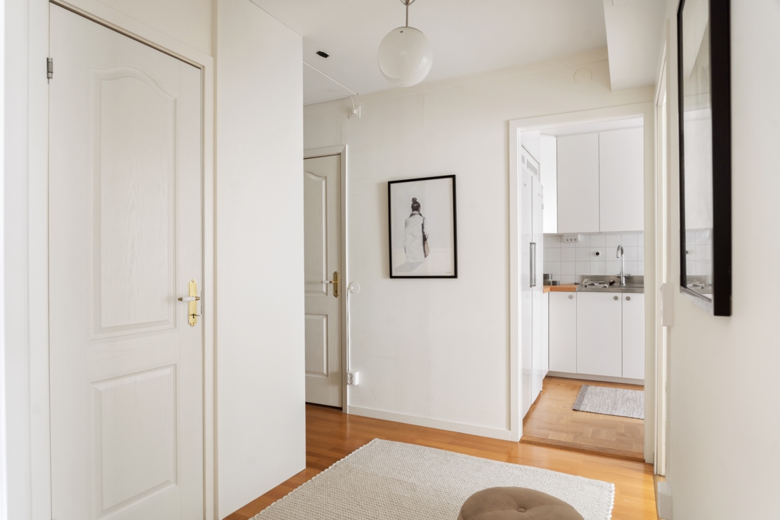 Välplanerad tvåa med inglasad balkong högt upp i huset med stor hiss på mysiga Alströmergatan