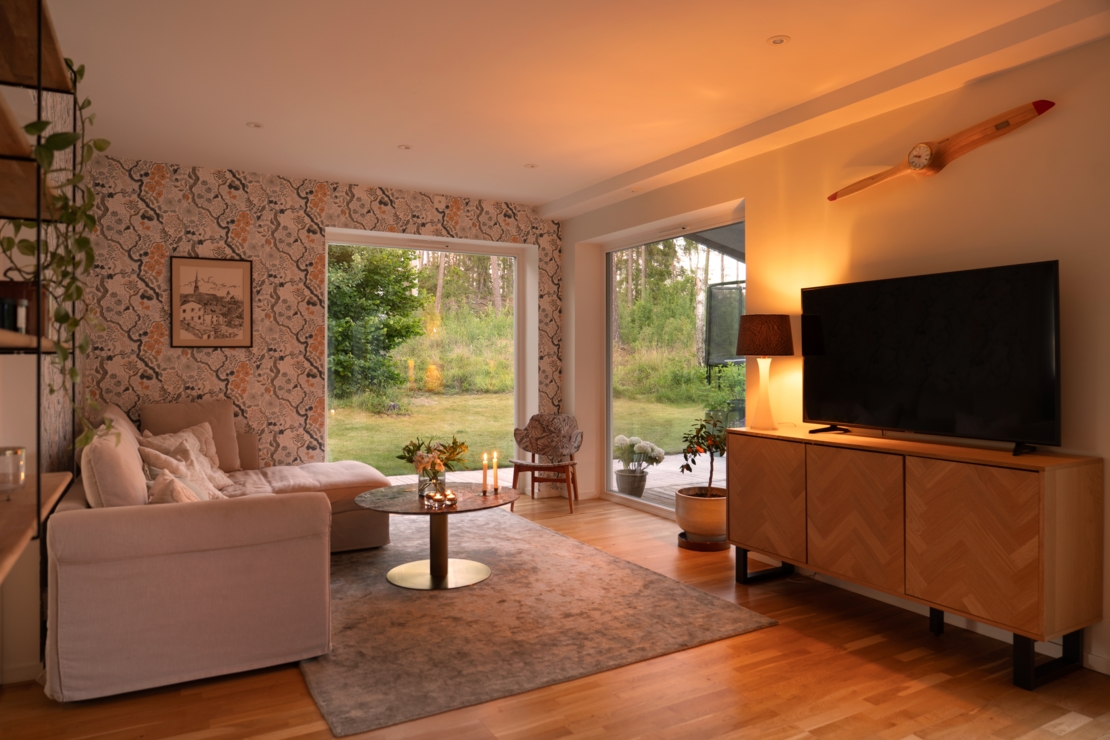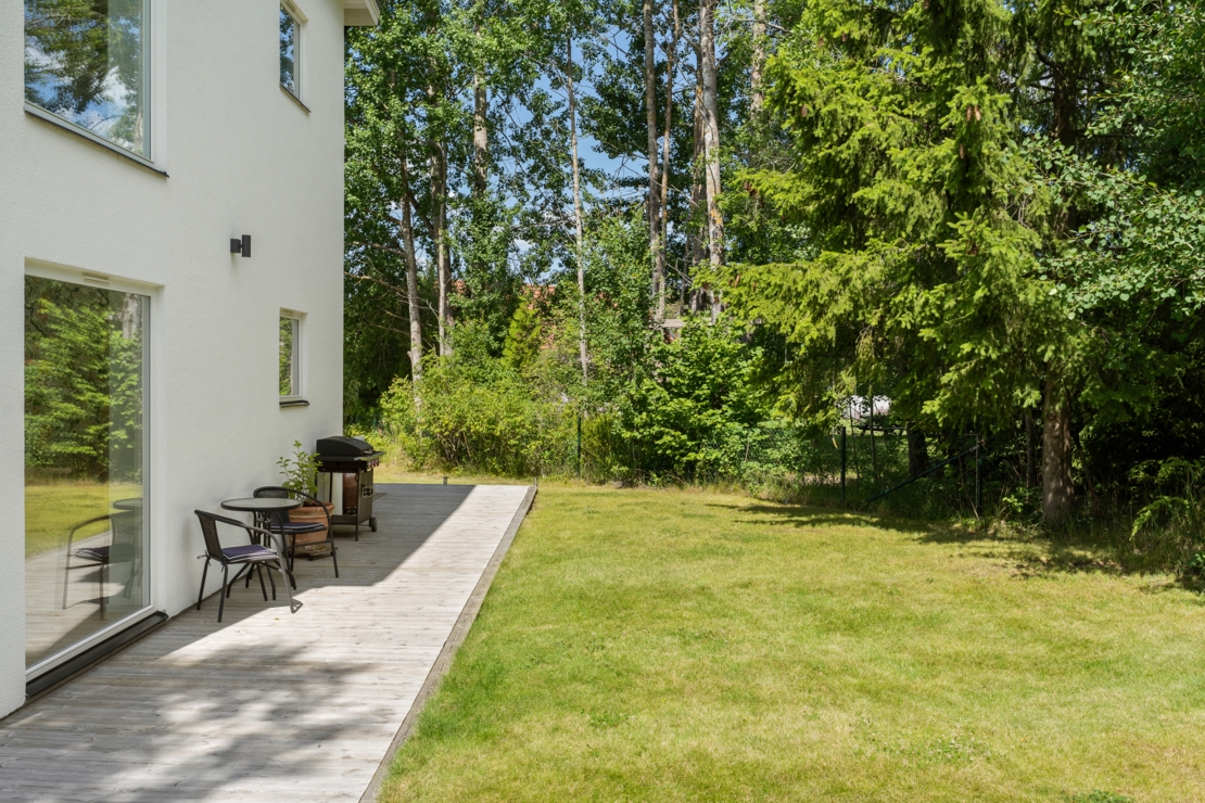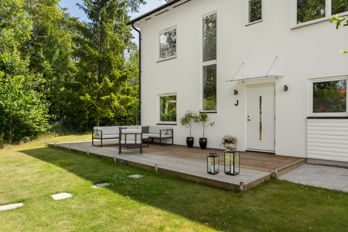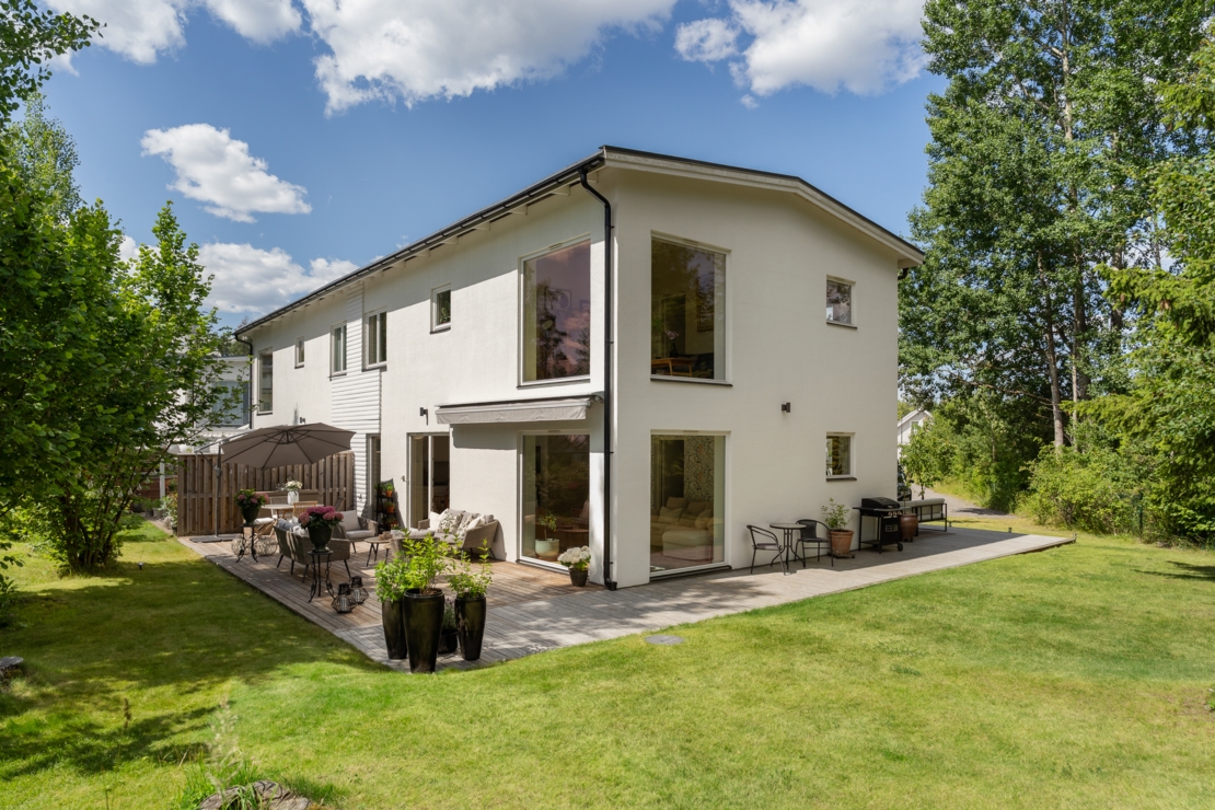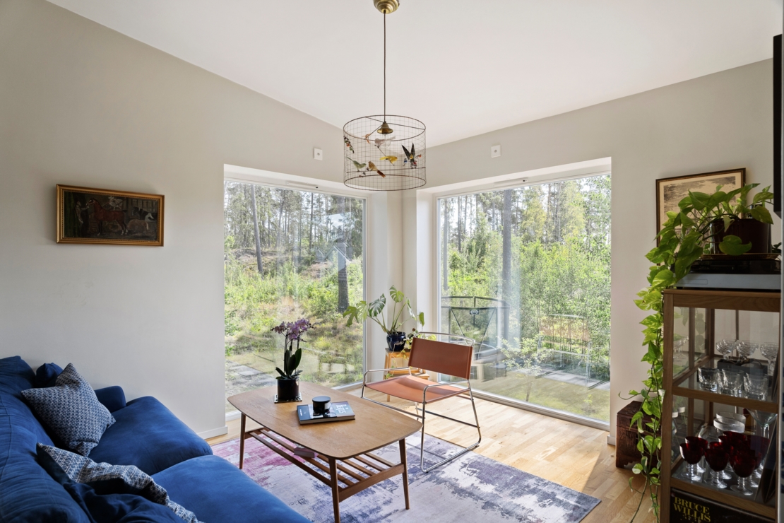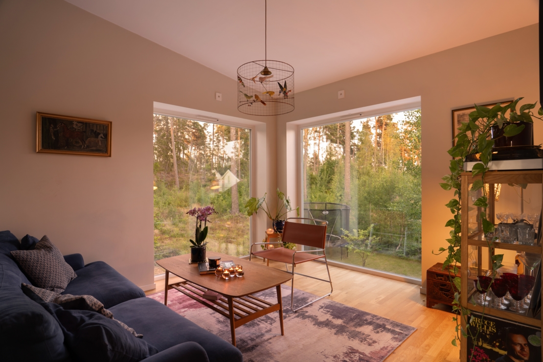 Elegant parhus i gavelläge med utsikt över skogsparti