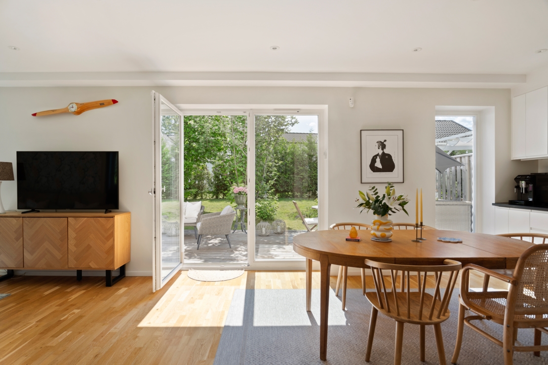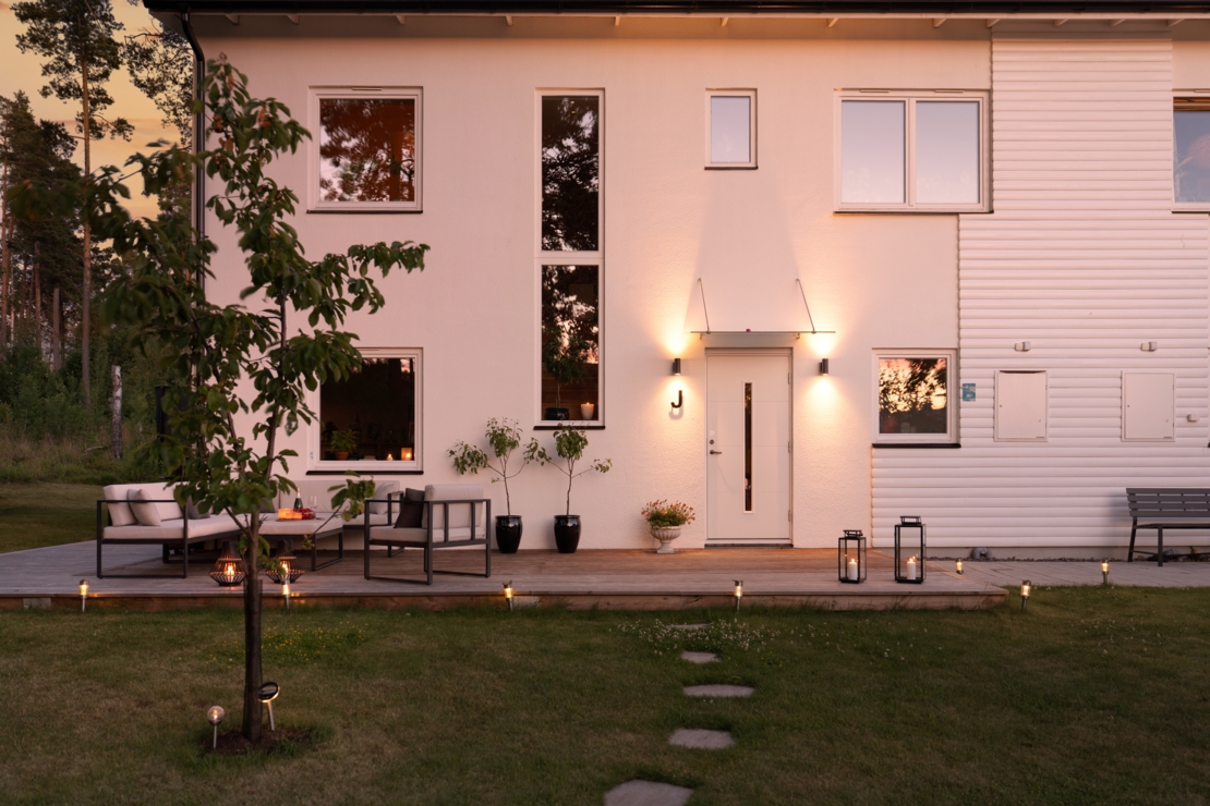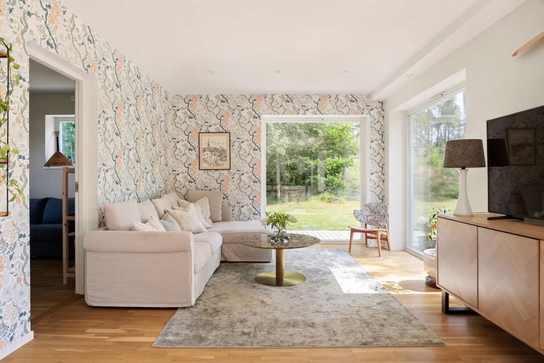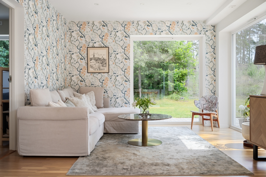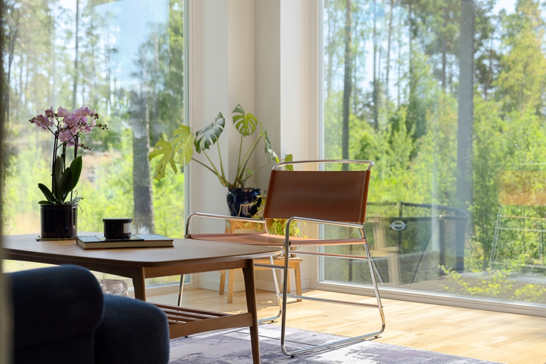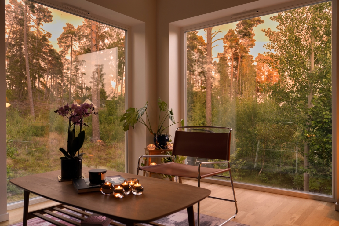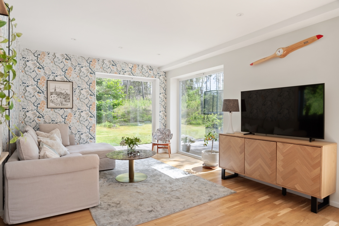 Elegant parhus i gavelläge med utsikt över skogsparti