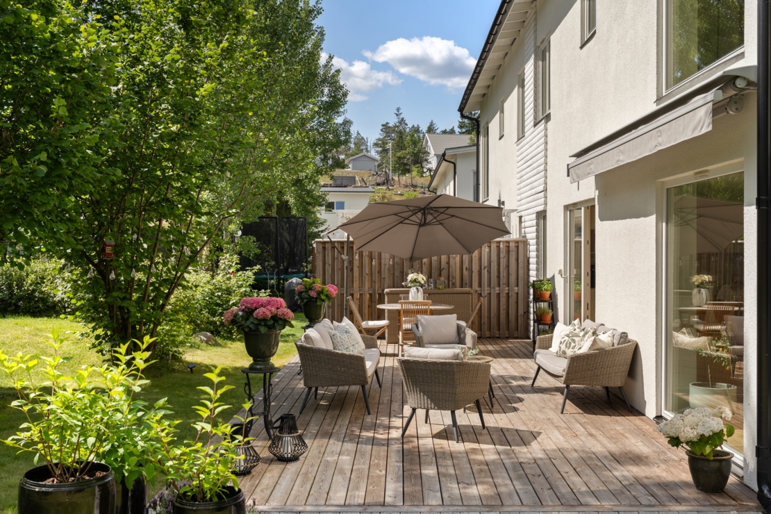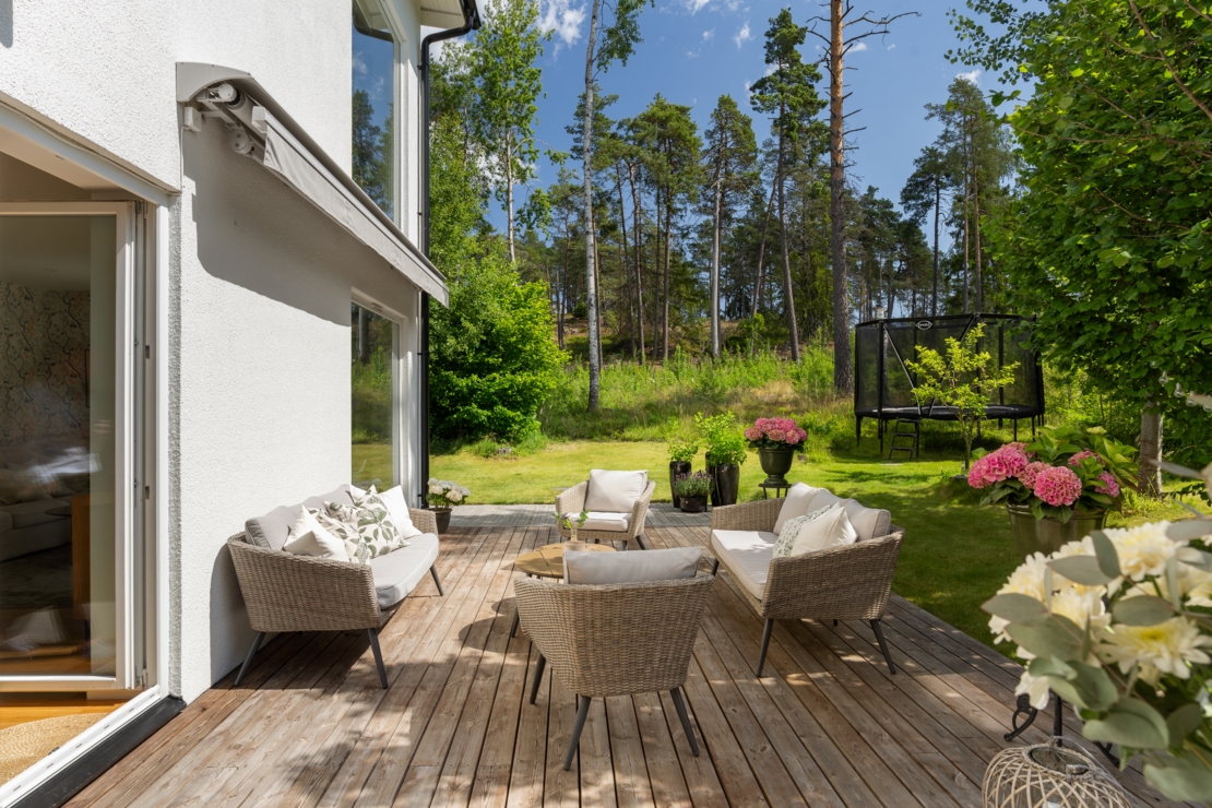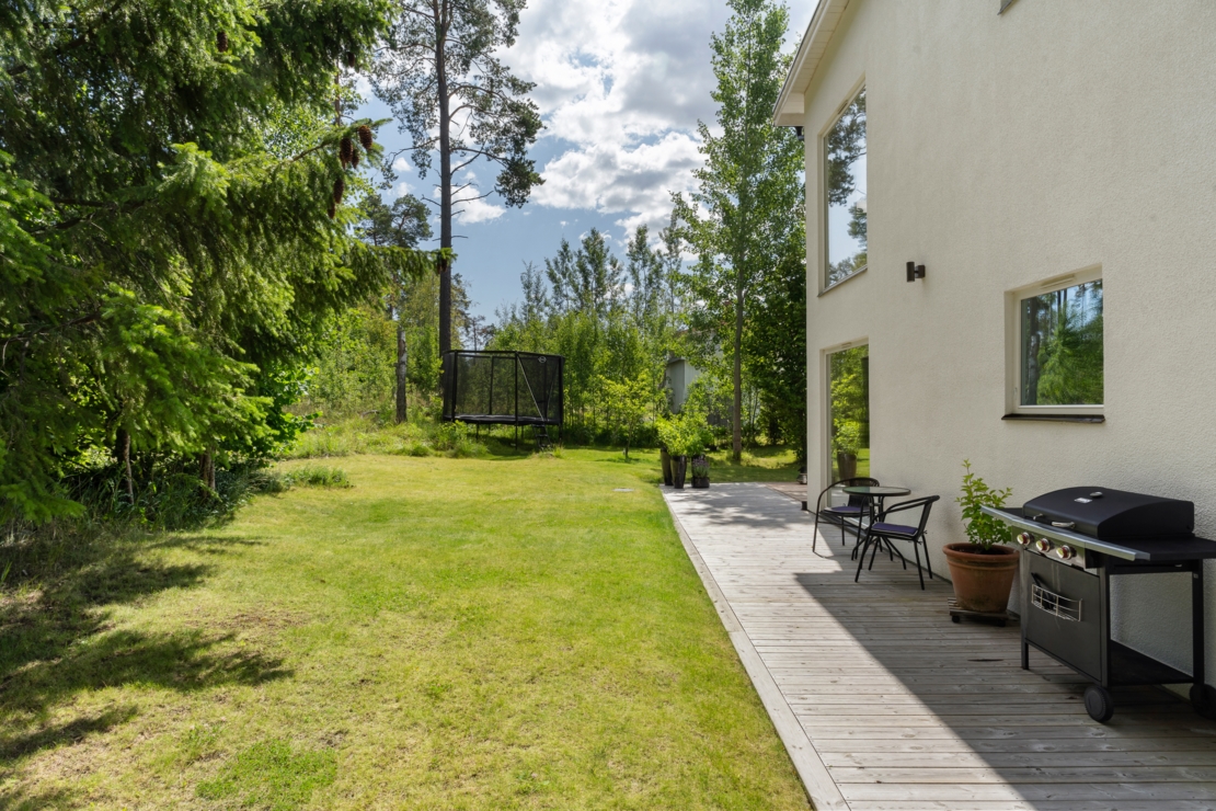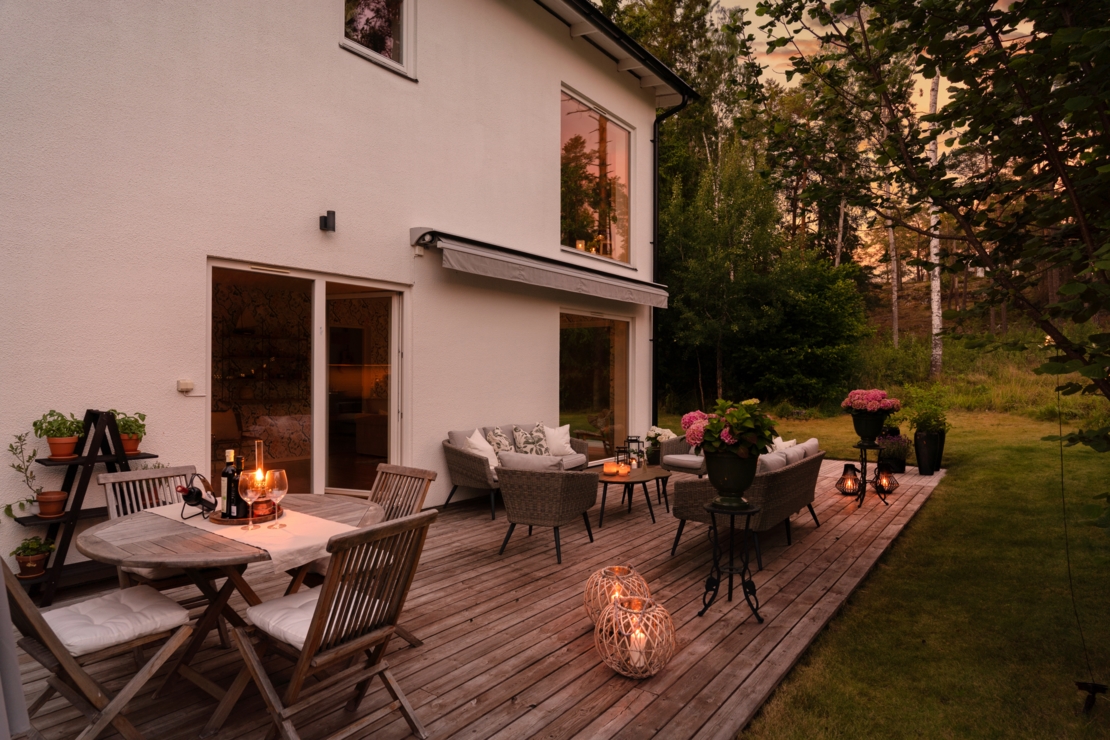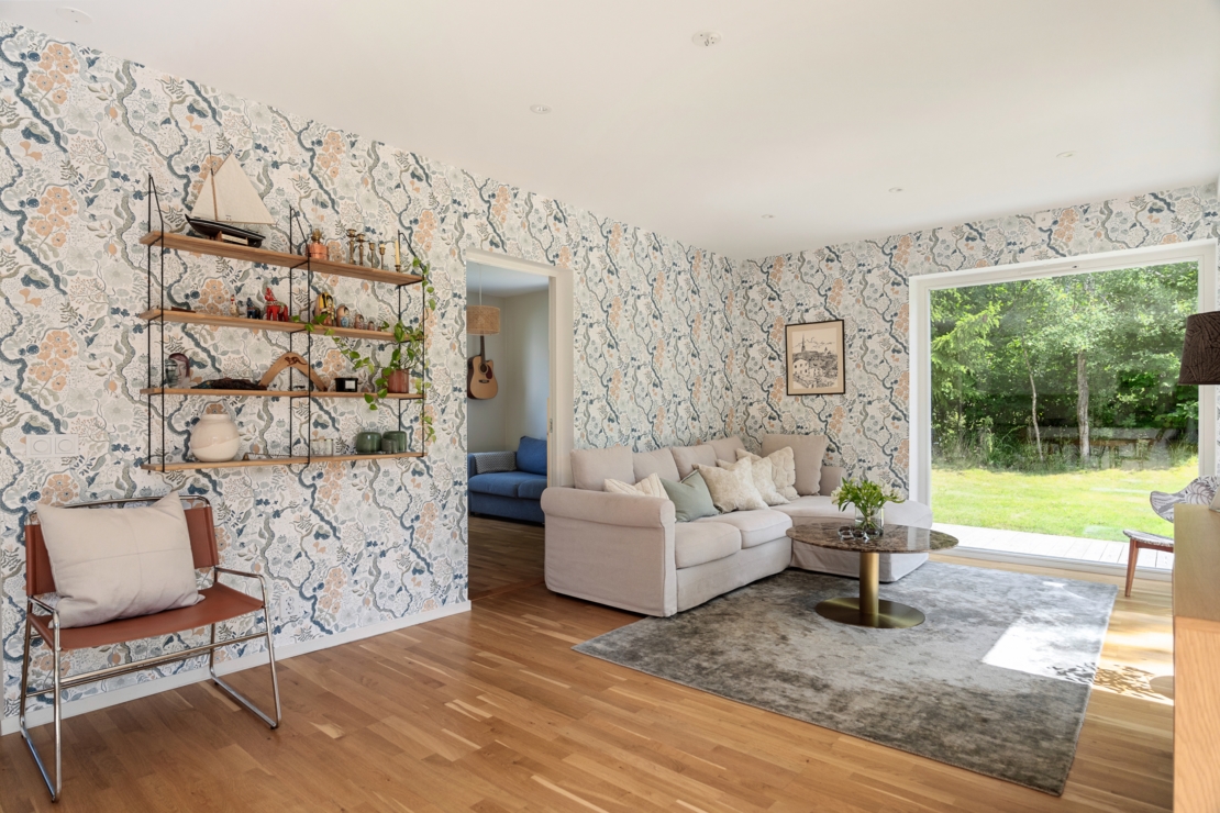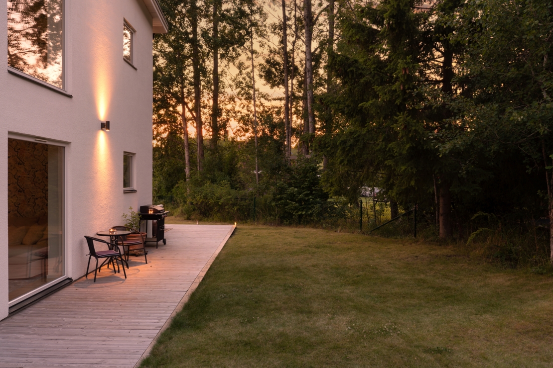 Elegant parhus i gavelläge med utsikt över skogsparti