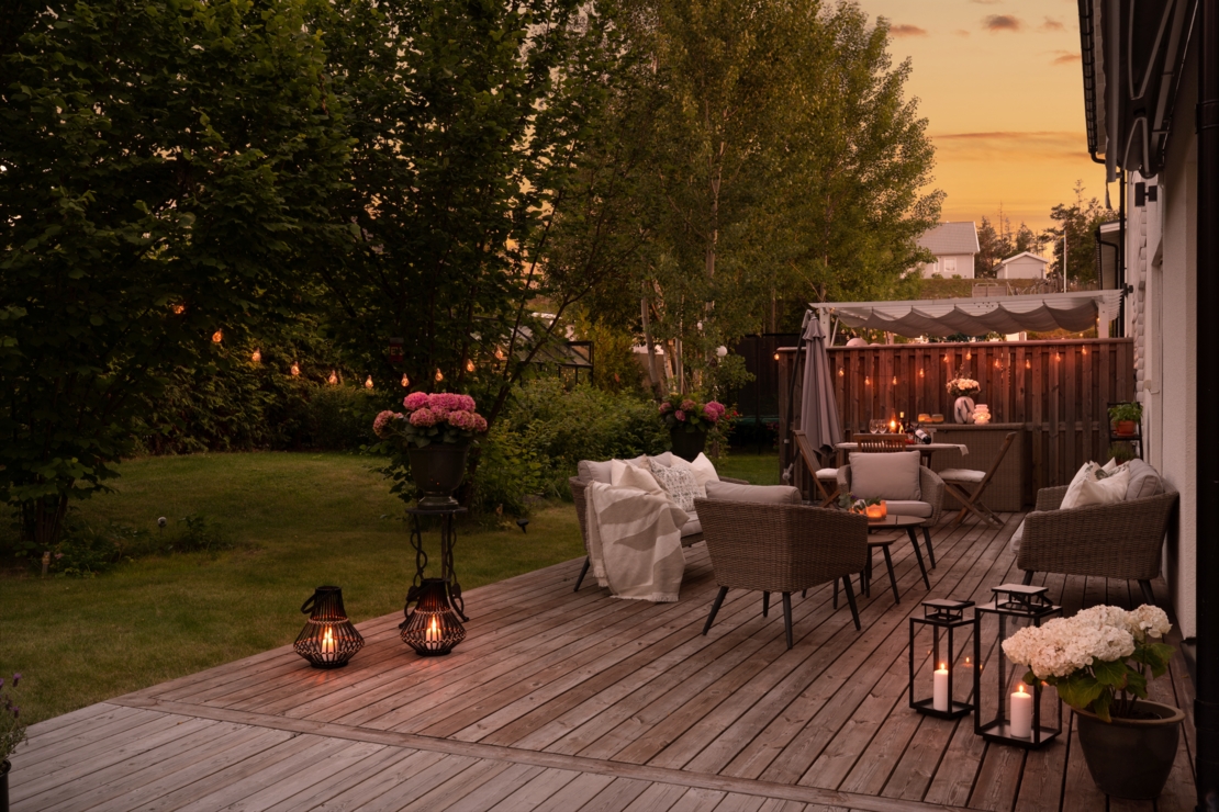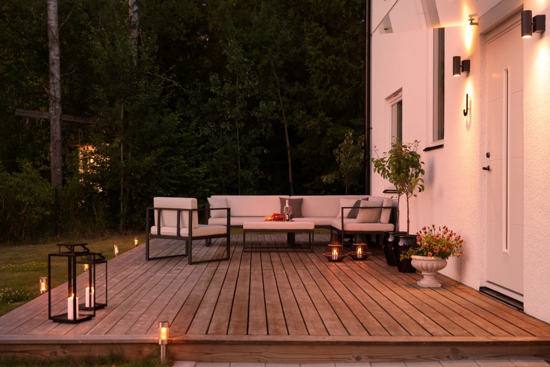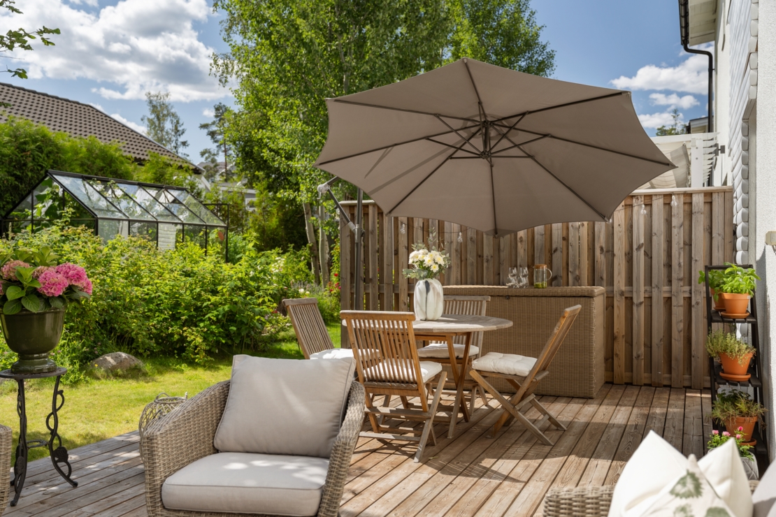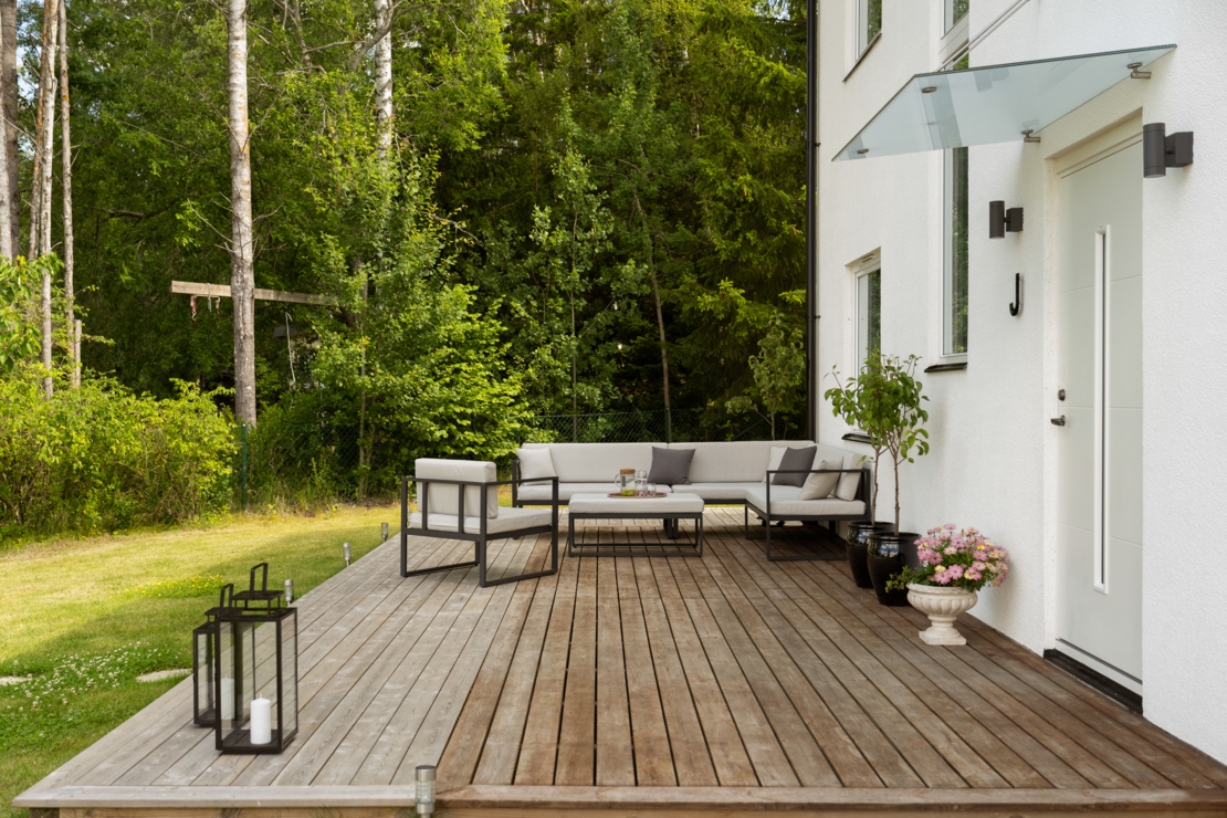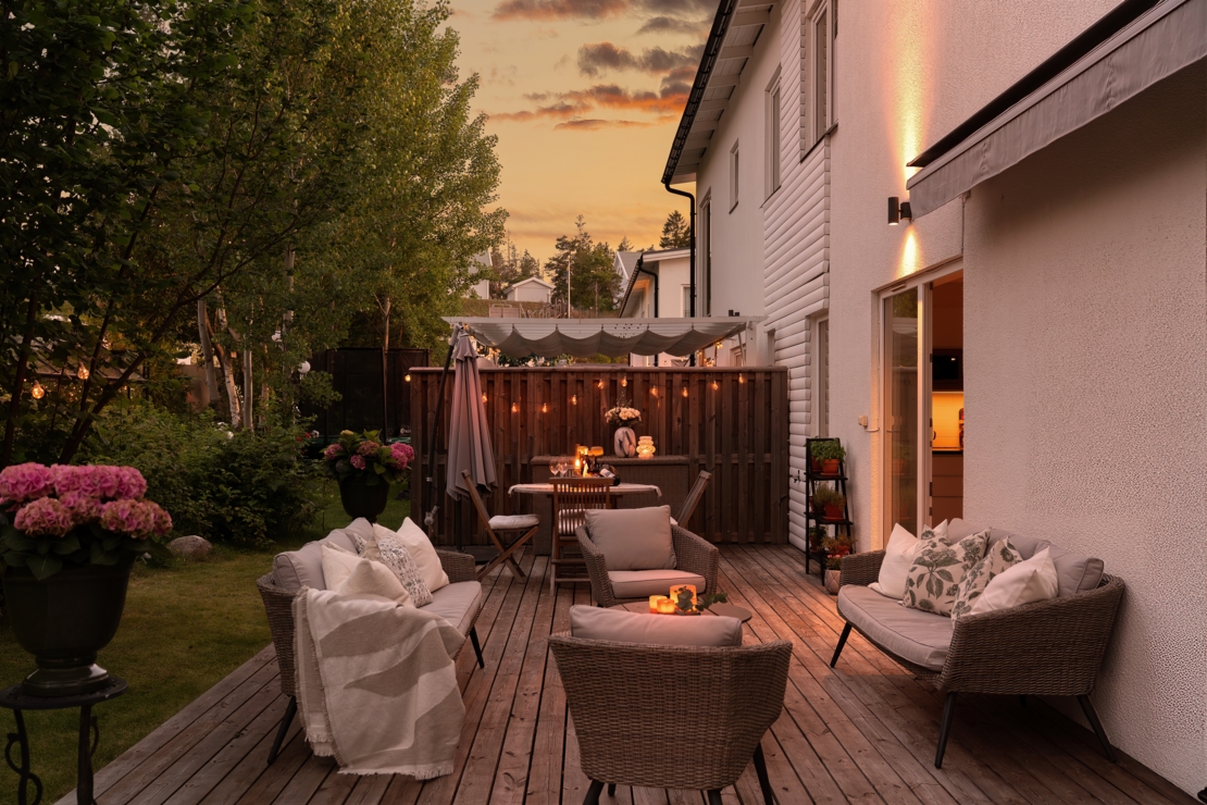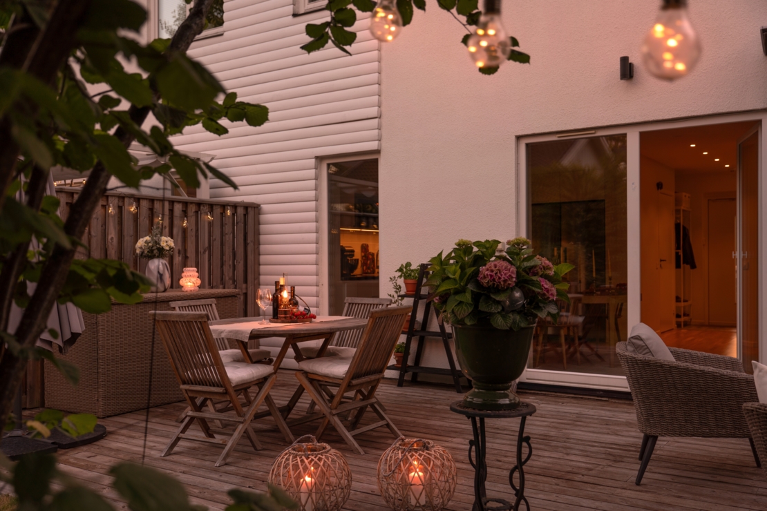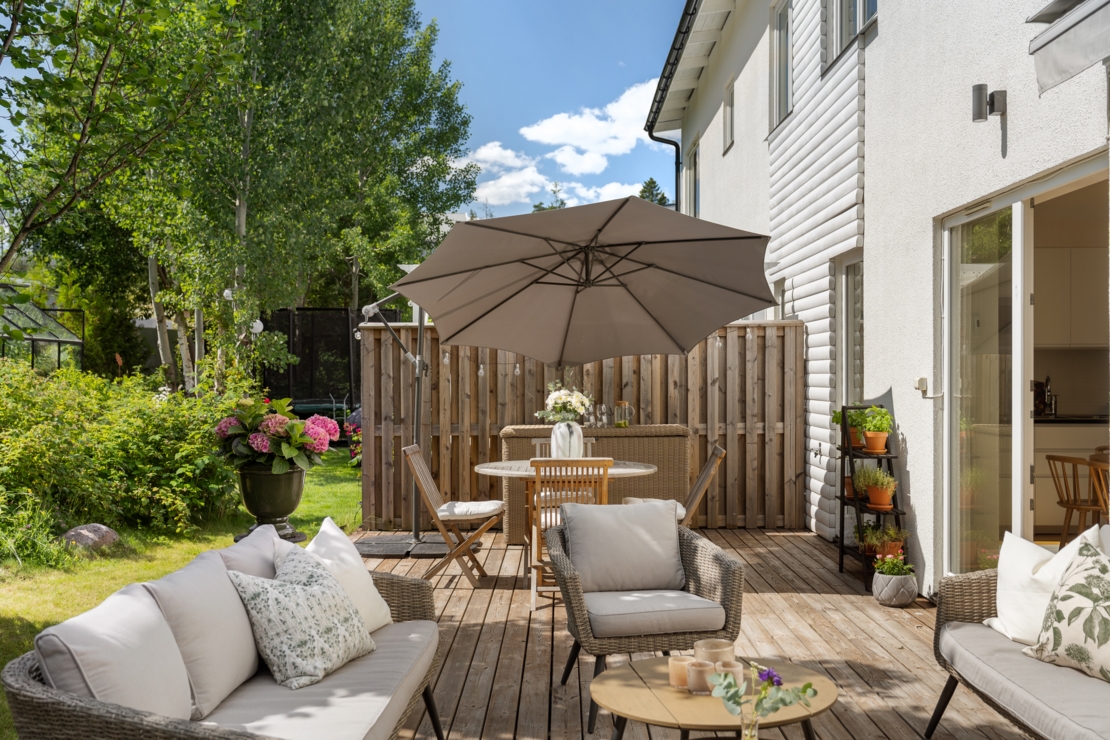 Elegant parhus i gavelläge med utsikt över skogsparti
