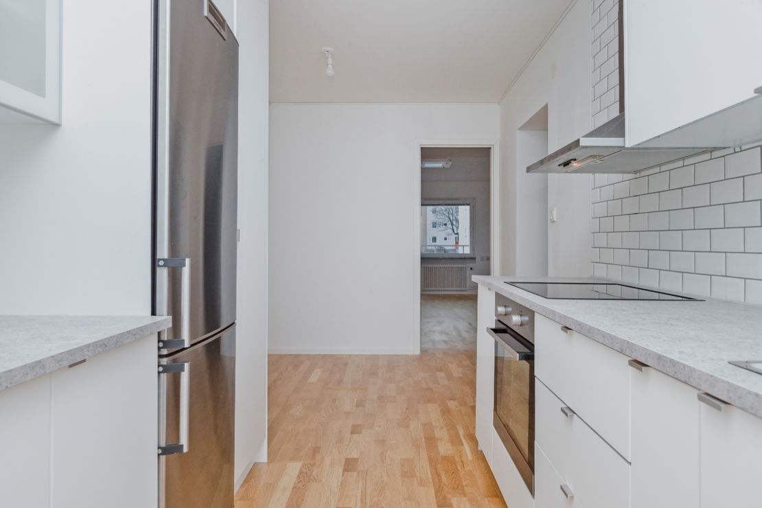 Högst upp, med balkong och sol från förmiddag till kväll! Lägenheten välkomnar dig med generösa sällskapsytor och stora fönster som släpper in rikligt med naturligt ljus. Bostaden har renoverats med nytt enhetligt parkettgolv och målade väggar 2024, samt kök och badrum har gjorts om. Här finns två rymliga sovrum, perfekt för en familj eller utrymme för arbete och hobby. Helkaklat badrum med Dusch, WC, kommod och spegel, samt tvättmaskin och golvvärme. Det ljusa och luftiga vardagsrummet är idealiskt för sociala sammanhang och gott om plats för allehanda möblemang. Du har även gott om förvaring i dubbla förråd i källaren!
