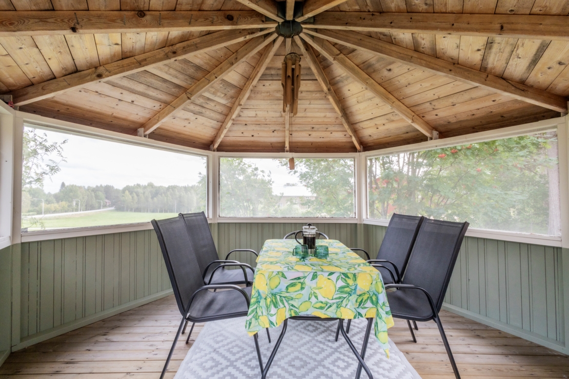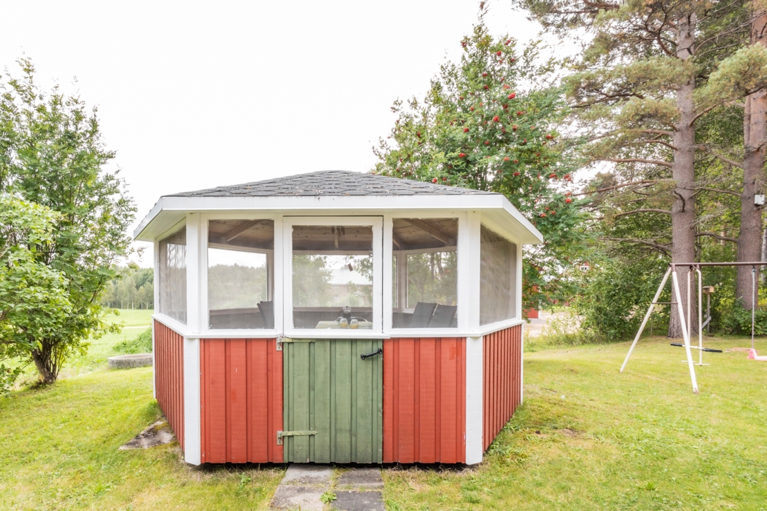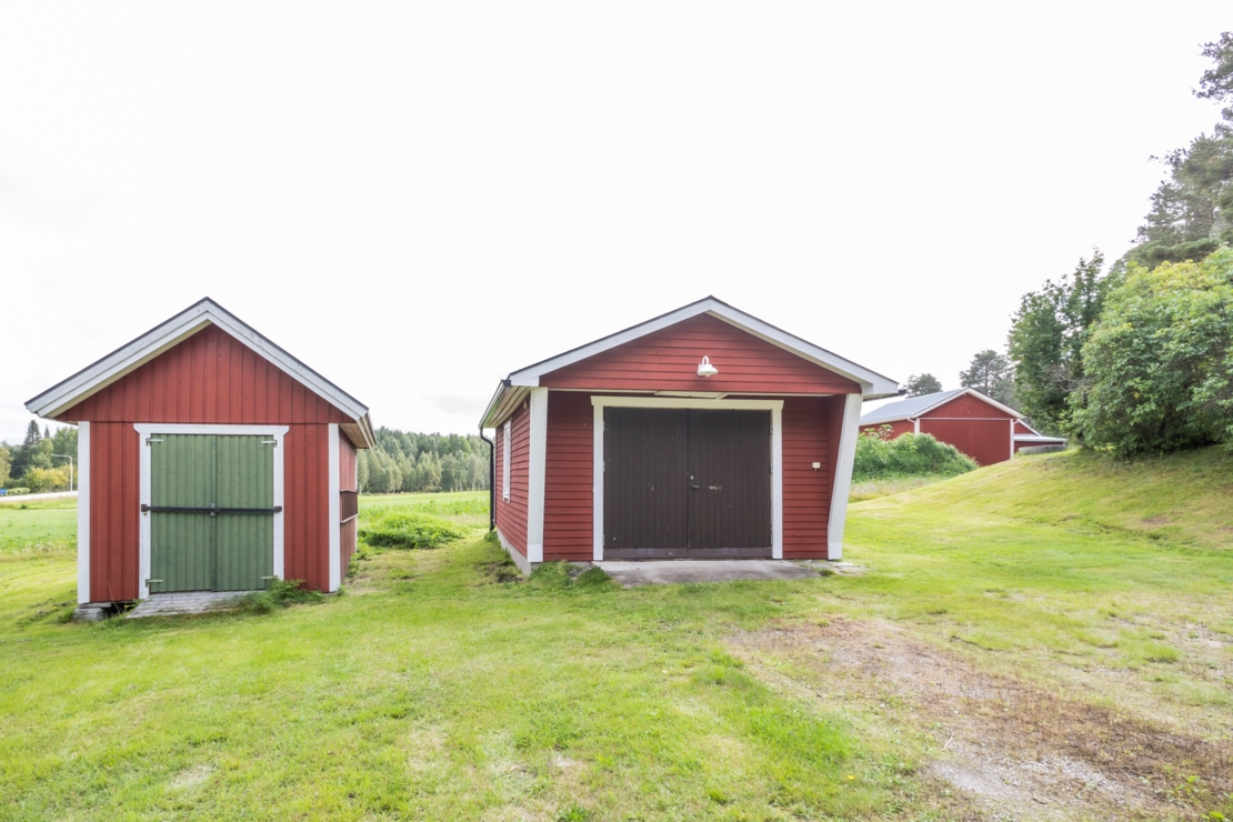 På den ca 1 900 kvm stora, skogsnära tomten finns även ett härligt lusthus utrustat med myggnät, ett fristående, isolerat garage med grusgolv, samt ett ca 20 m² stort förråd/skotergarage i bra skick.
