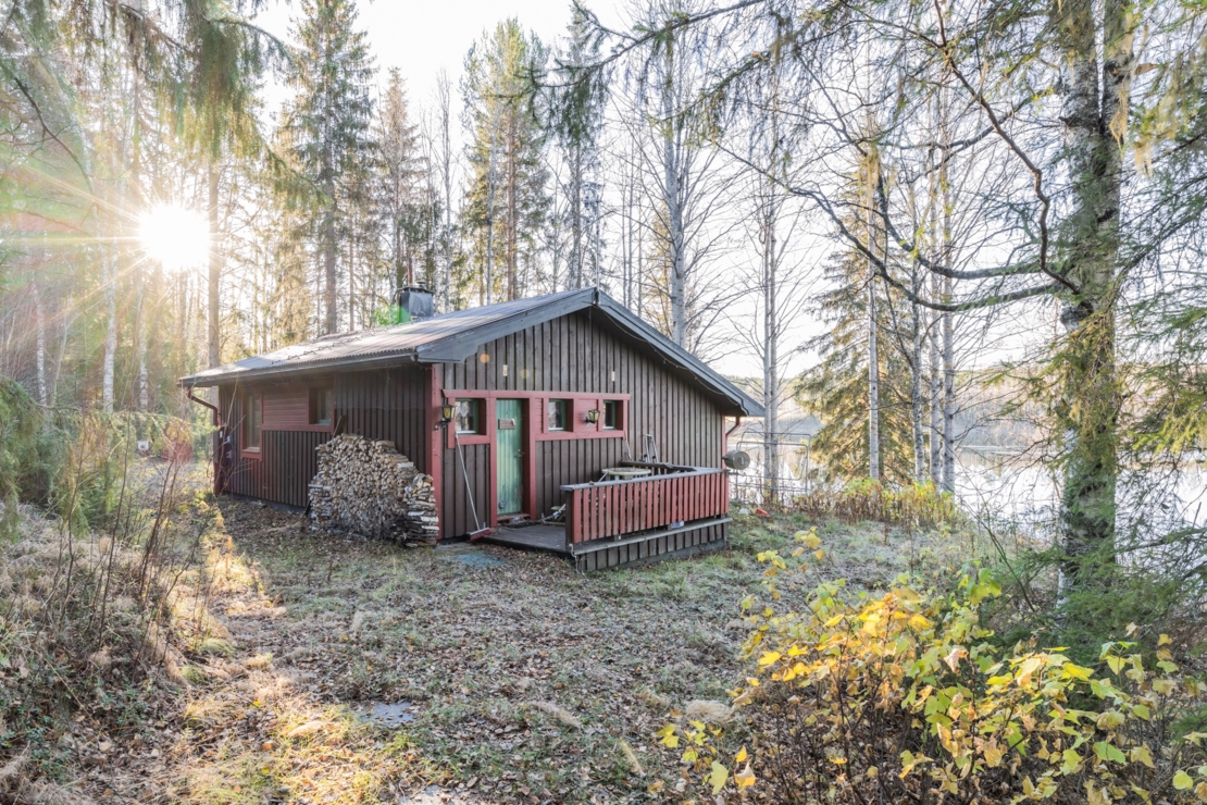 Bostadshuset erbjuder ett rymligt allrum med vedkamin, ett mindre sovrum, kök och badrum samt en härlig altan med utsikt mot älven, perfekt för morgonkaffet eller sommarkvällen.