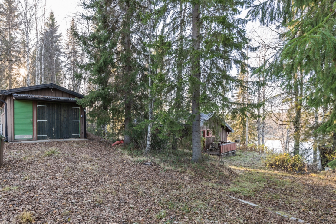 På tomten finns även en garagebyggnad med gillestuga på betongplatta samt en altan med älvutsikt. Dessutom finns en charmig sovstuga om ca 10 kvm nära strandlinjen, med indragen el.
