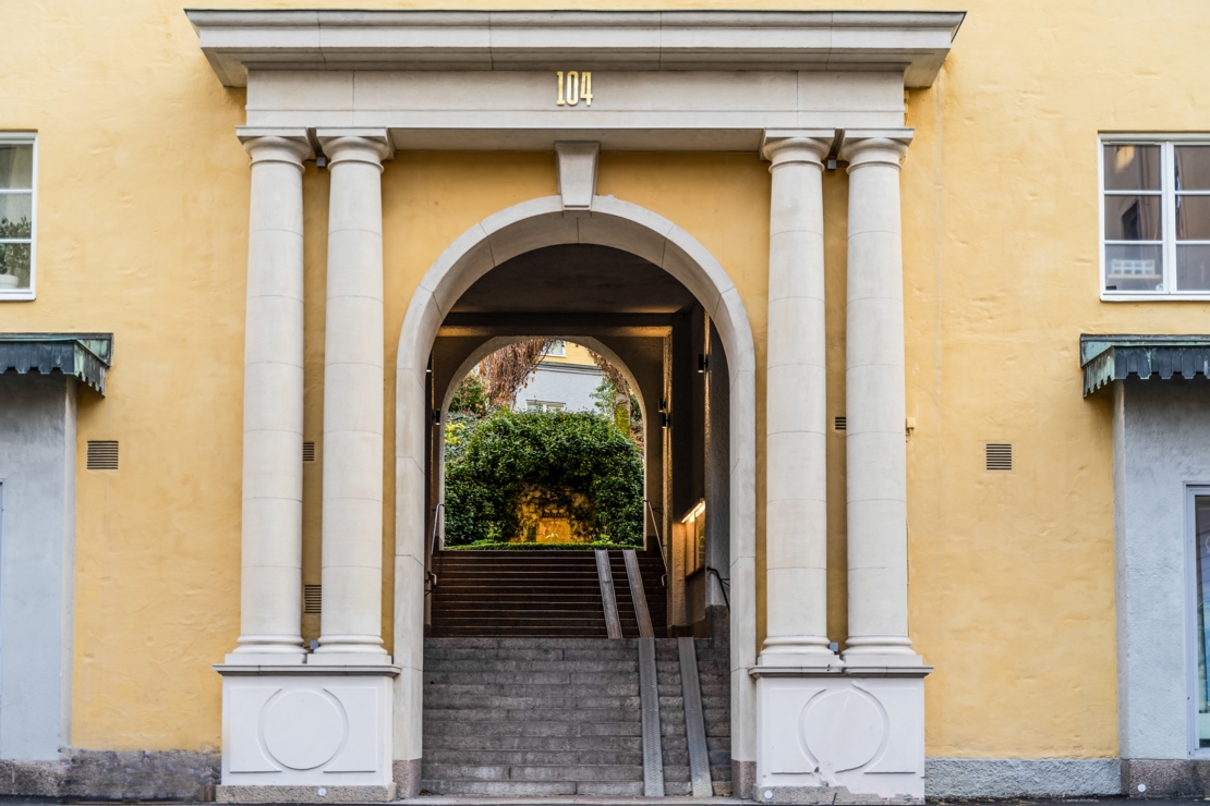 På Birger Jarlsgatan 104 i Stockholms innerstad finns denna ståtliga bostadsrättsförening med 283 lägenheter från år 1928. Fastigheten är av Stockholms Stadsmuseum klassificerad som grön, vilket betyder att bebyggelsen är särskilt värdefull från historisk, kulturhistorisk, miljömässig eller konstnärlig synpunkt.