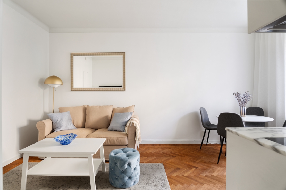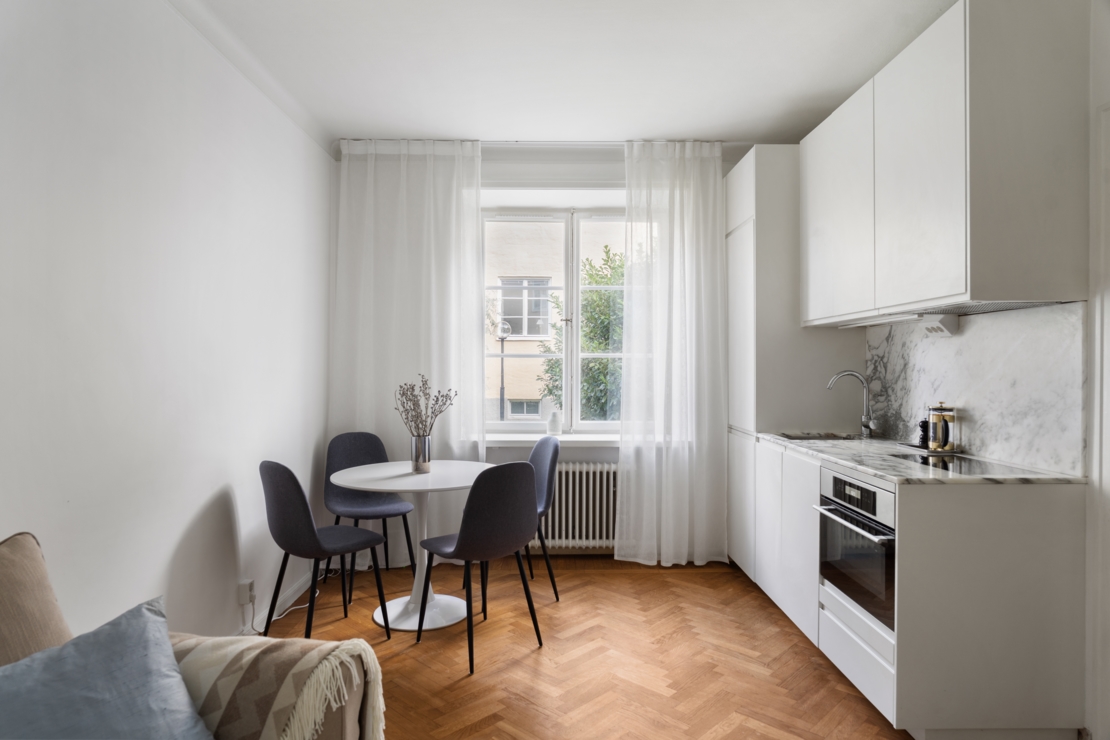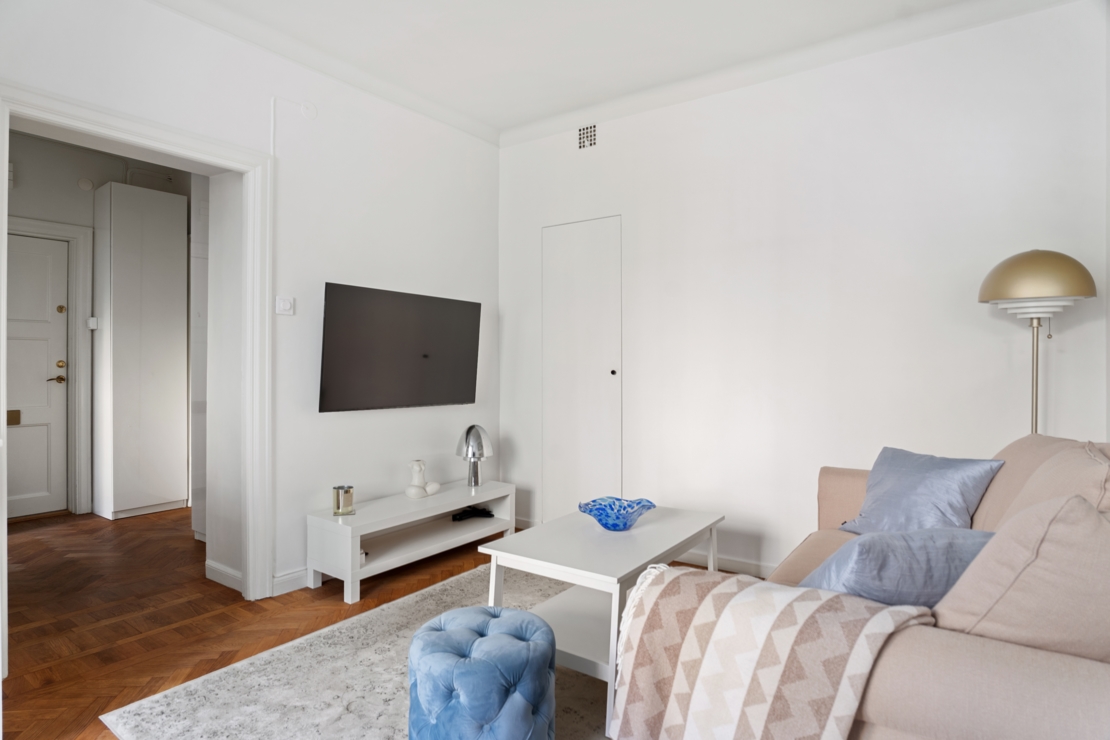 Topprenoverad pärla med lyxiga materialval på Nybrogatan i obelånad förening