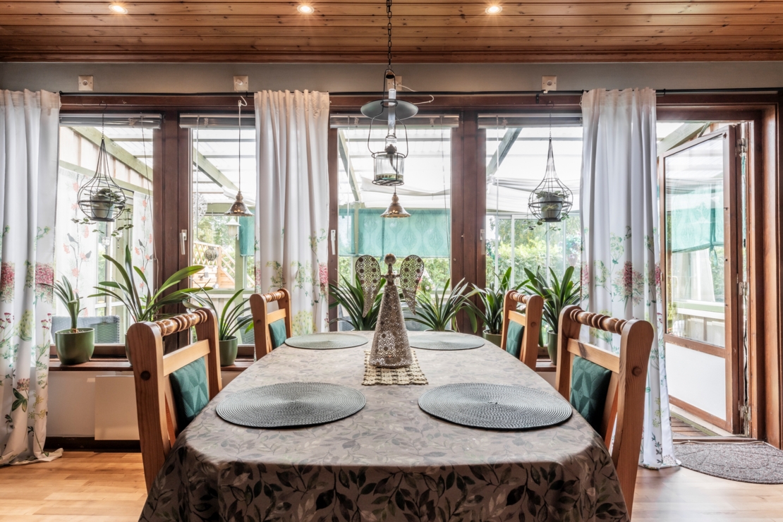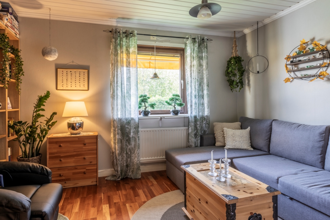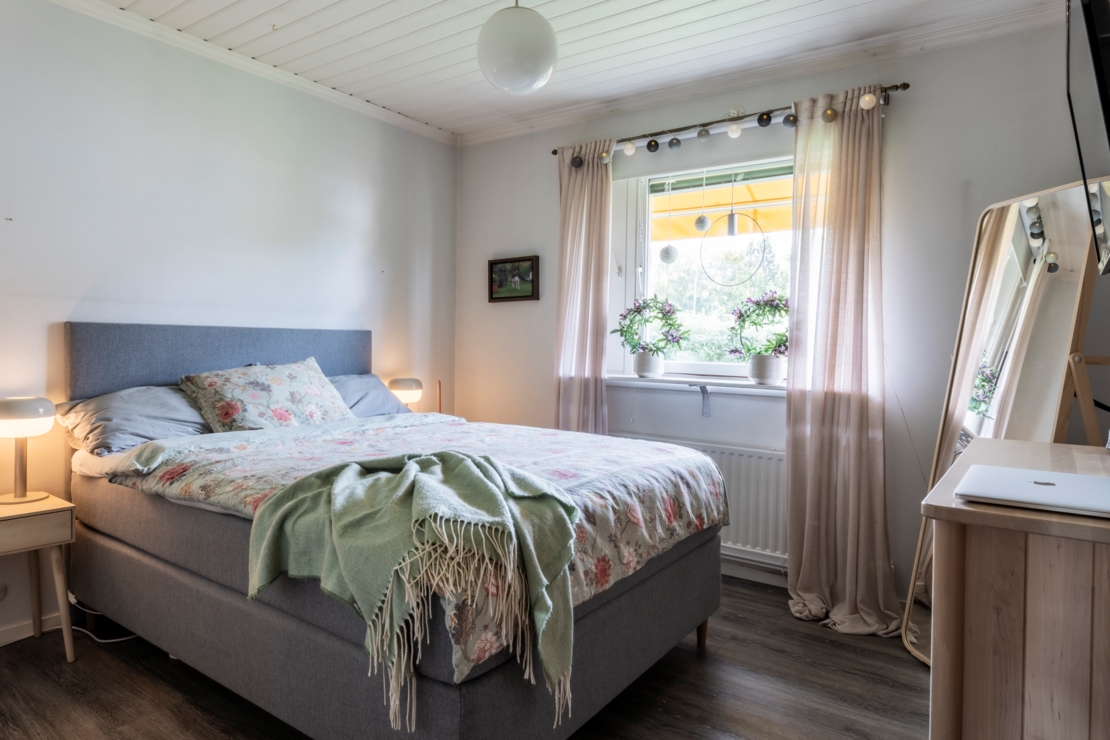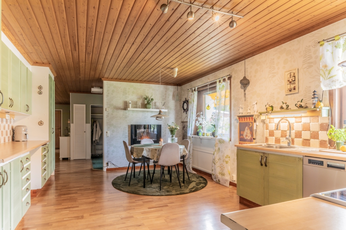 Trevlig enplansvilla med renoverade ytskikt och välvårdad trädgård.