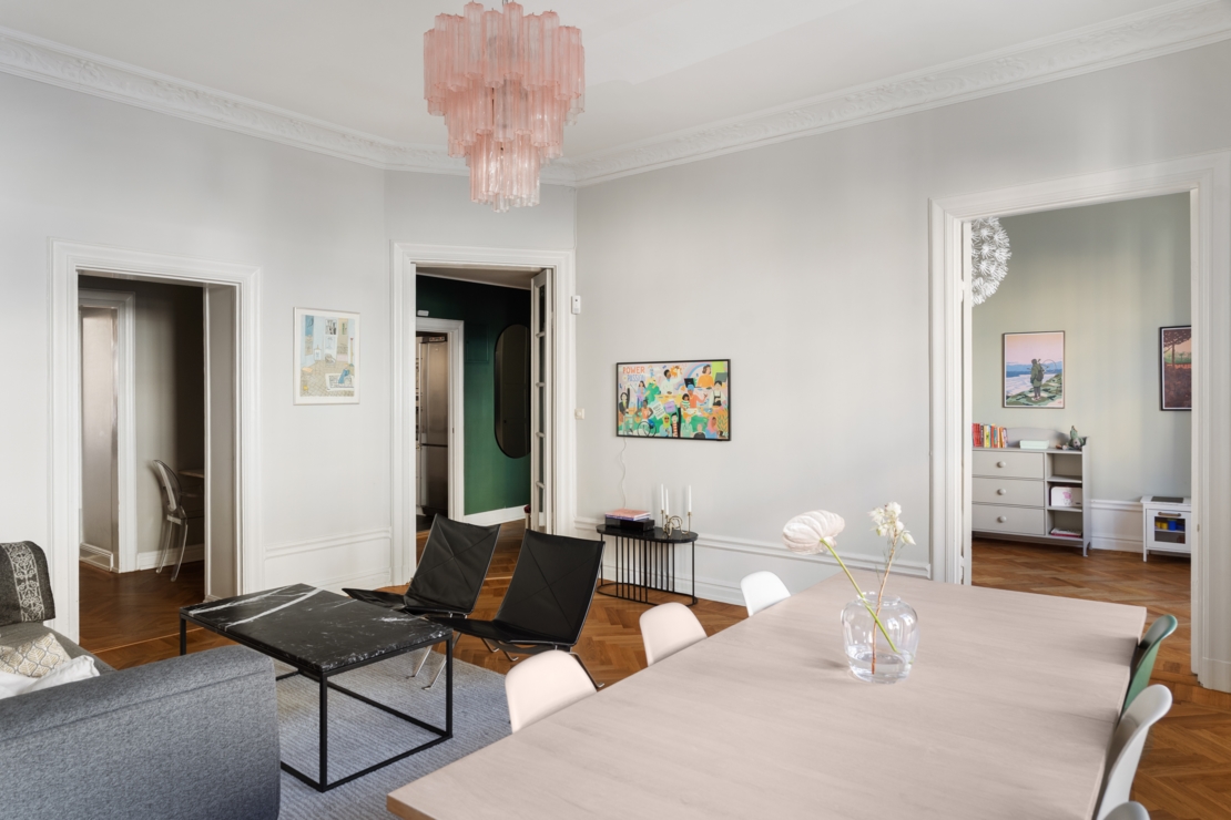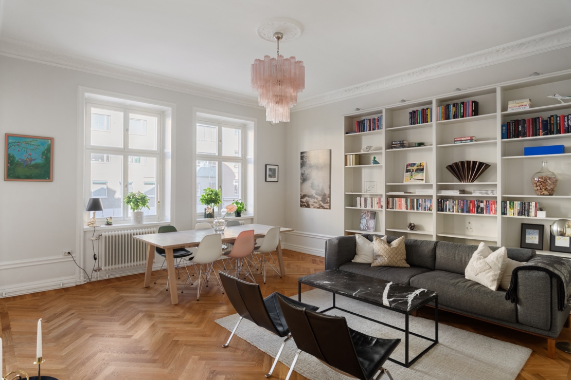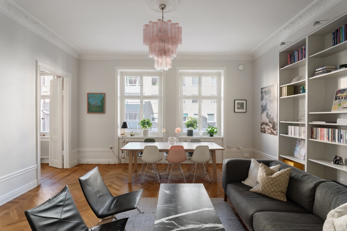 Välplanerad trerummare på toppadress med generös takhöjd, balkong & låg belåningsgrad