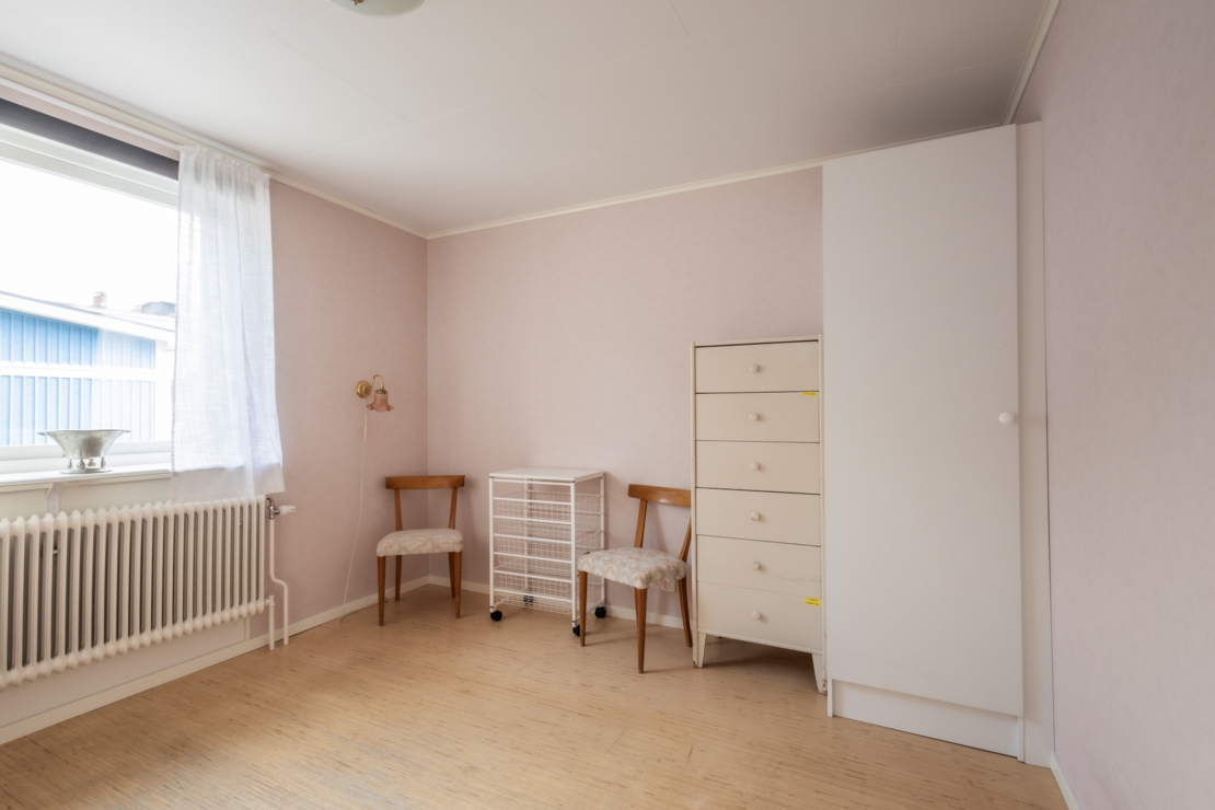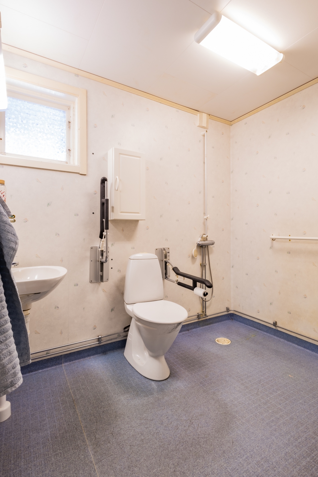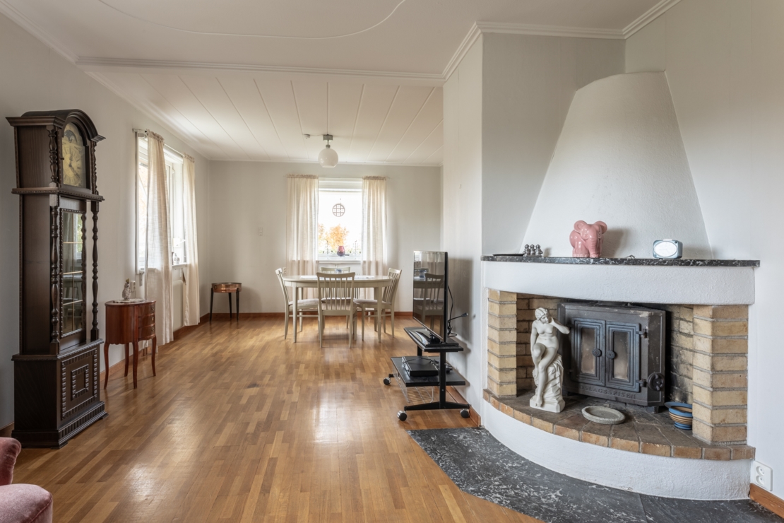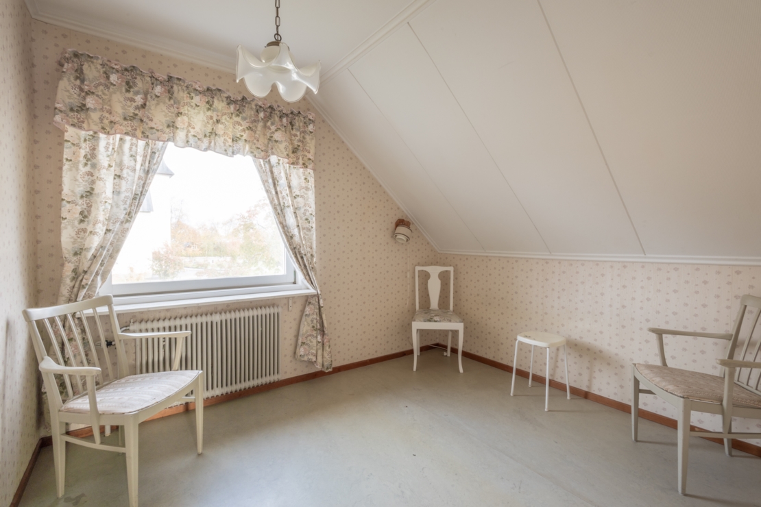 På entréplan finner du ett ljust och välutrustat kök, ett rymligt vardagsrum med braskamin (OBS! ej besiktad), två trevliga sovrum samt ett stort, handikappanpassat badrum med dusch och toalett. En ny duschkabin är redan inköpt, men behöver installeras.