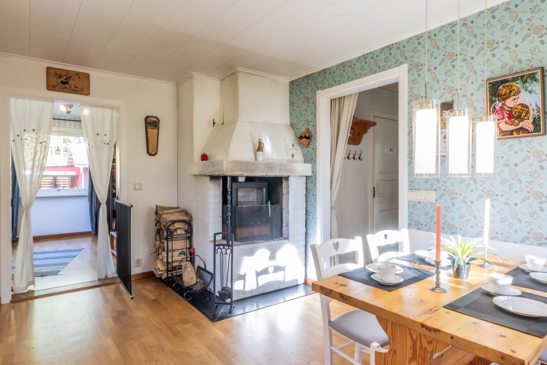 Huset erbjuder en hemtrevlig atmosfär och är smakfullt renoverat med fräscha ytskikt.