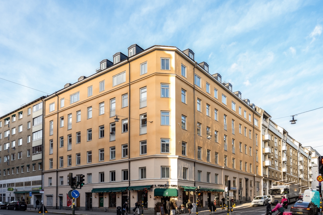 2021 Fasaden, stuprör och de franska balkongerna mot gatan samt alla ytterfönster har renoverats.
